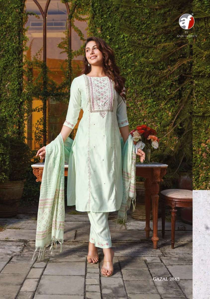 GAZAL VOL-3 BY ANJU FABRICS DESIGNER WITH KATHA WORK NAYLON VISCOSE KURTI WITH PANT AND DUPATTA ARE AVAILABLE AT WHOLESALE PRICE