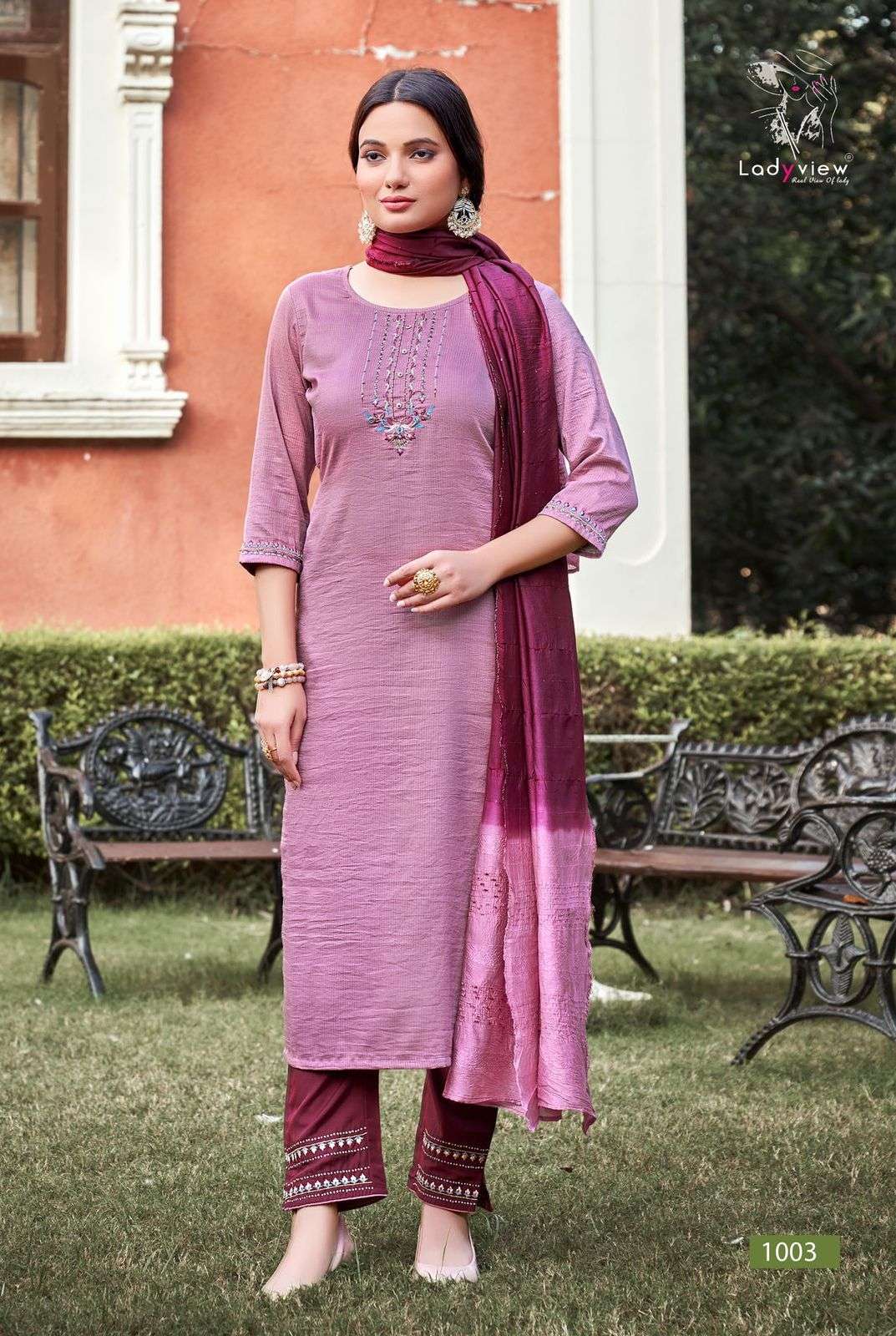 GEET KURTI BY LADYVIEW DESIGNER WITH WORK VISCOSE SILK KURTI WITH PANT AND DUPATTA ARE AVAILABLE AT WHOLESALE PRICE