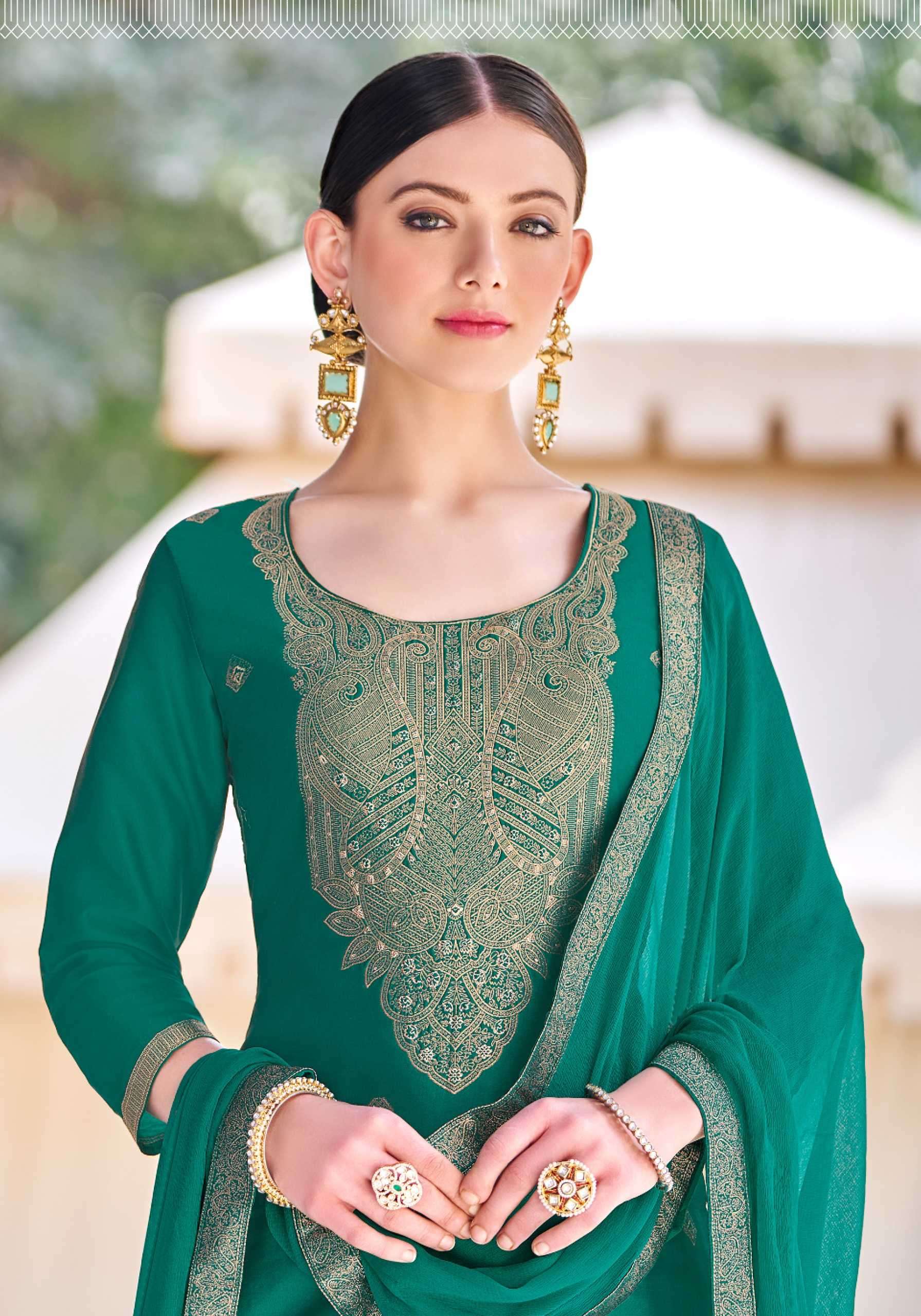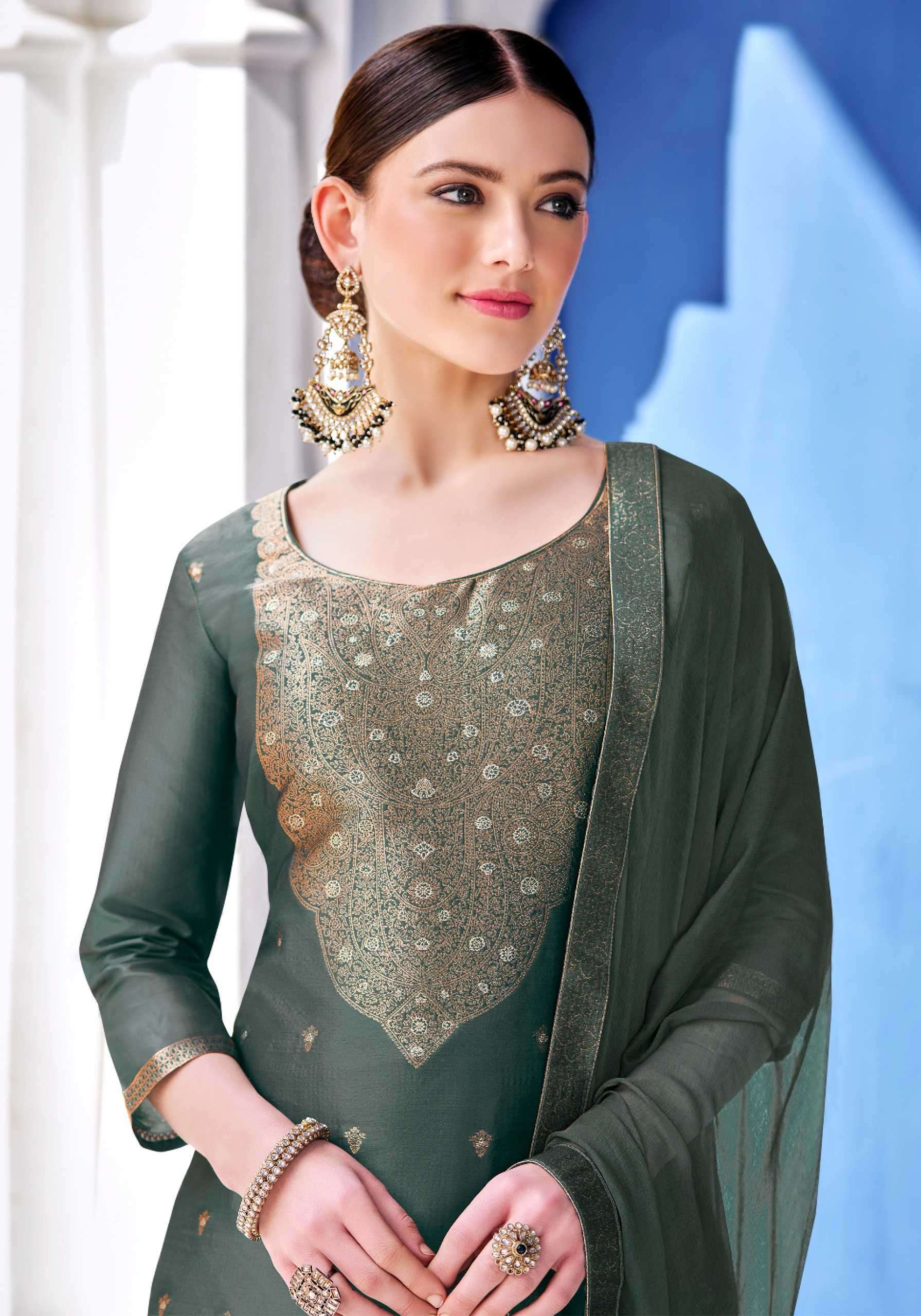 TOP - Premium Dola Jacquard Designer Suit With Elegant Hand Work