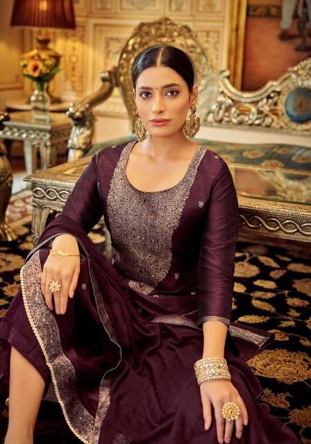 TOP = Premium Dola Jacquard Designer Suit With Elegant Hand Work