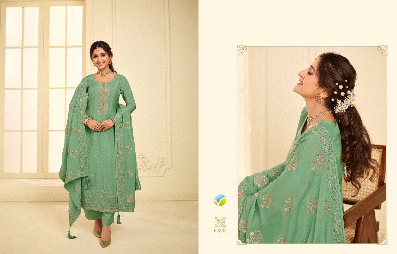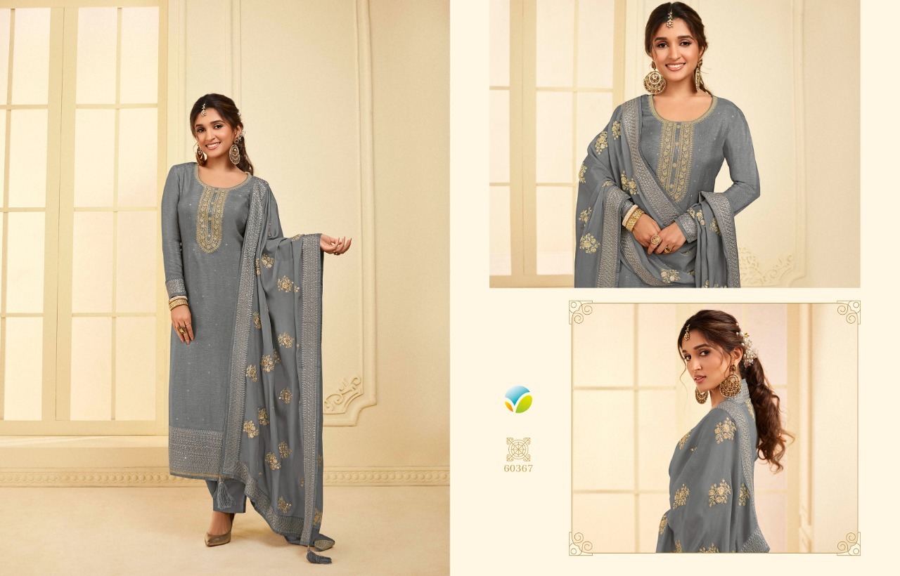 Ghazal By Vinay Designer With Embroidery Work Dola Silk Suits Are Available At Wholesale Price