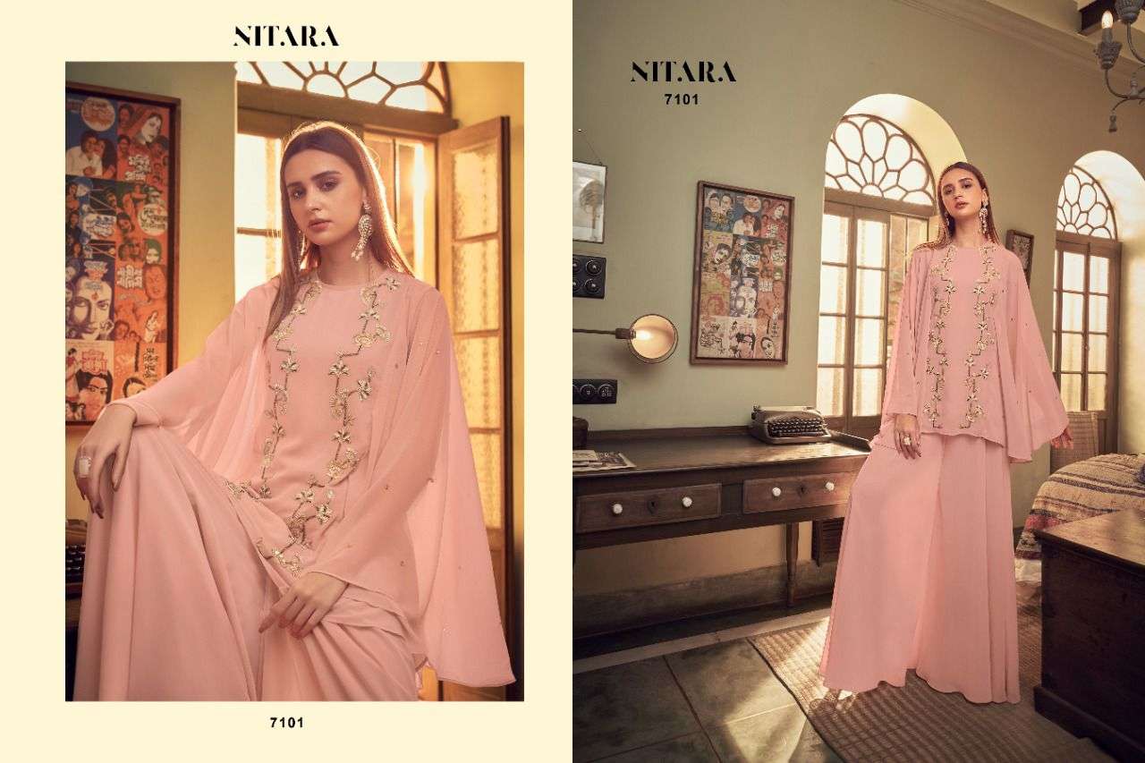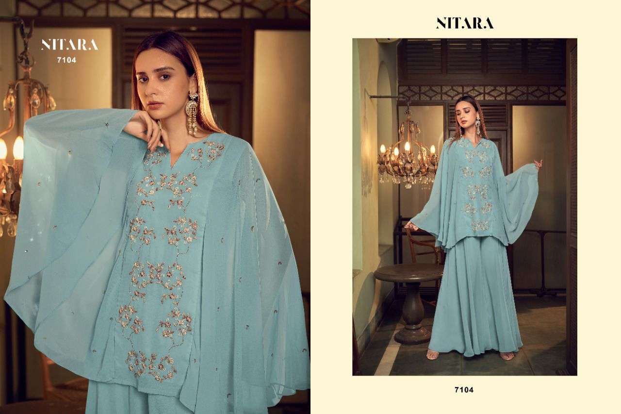 GHAZAL VOL-3 BY NITARA DESIGNER WITH WORK GEORGETTE TOP WITH SHARARA ARE AVAILABLE AT WHOLESALE PRICE