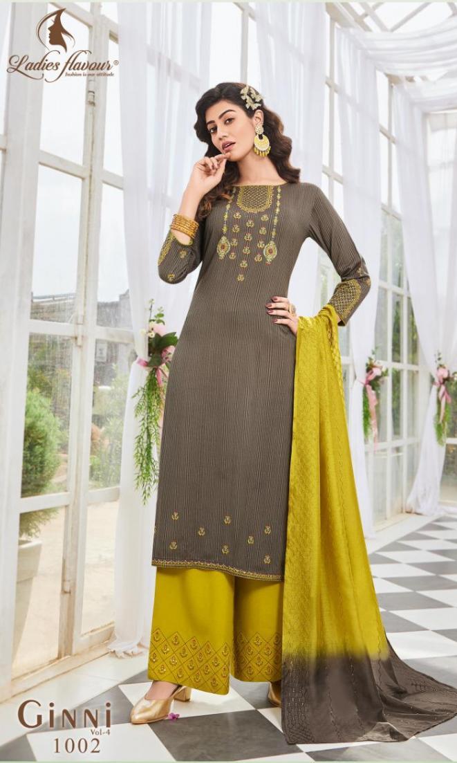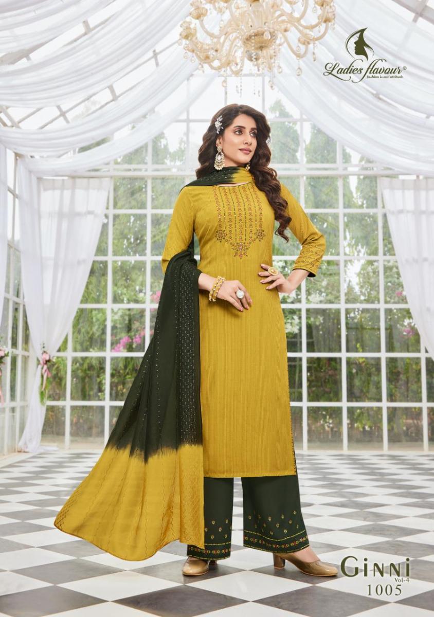 Ginni Vol-4 Kurti By Ladies Flavour Designer With Work Viscose Kurti With Pant And Dupatta Are Available At Wholesale Price