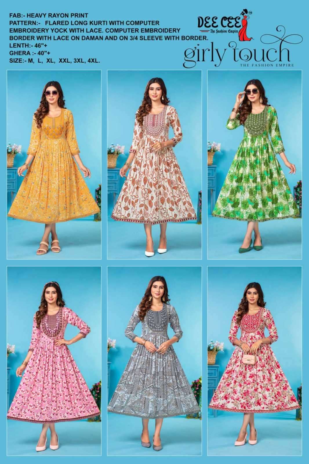 | Name: | dee cee-GIRLY TOUCH SERIES 101 TO 106 KURTI BY DEE CEE |