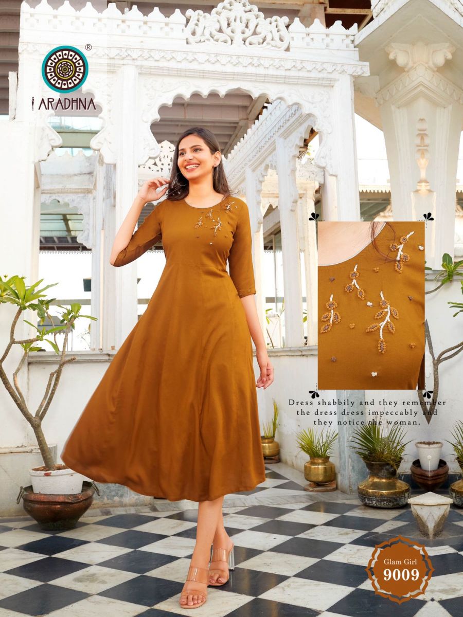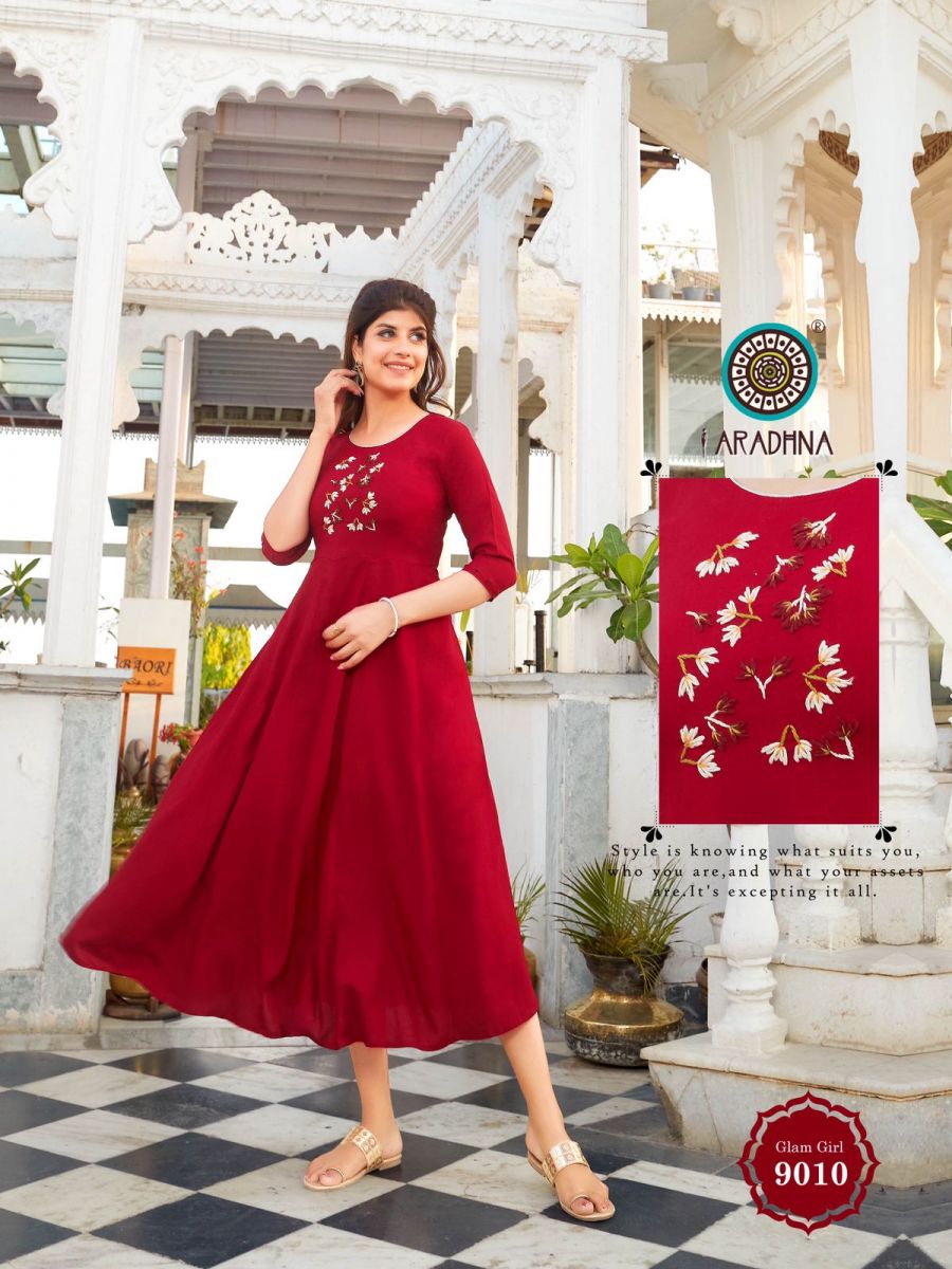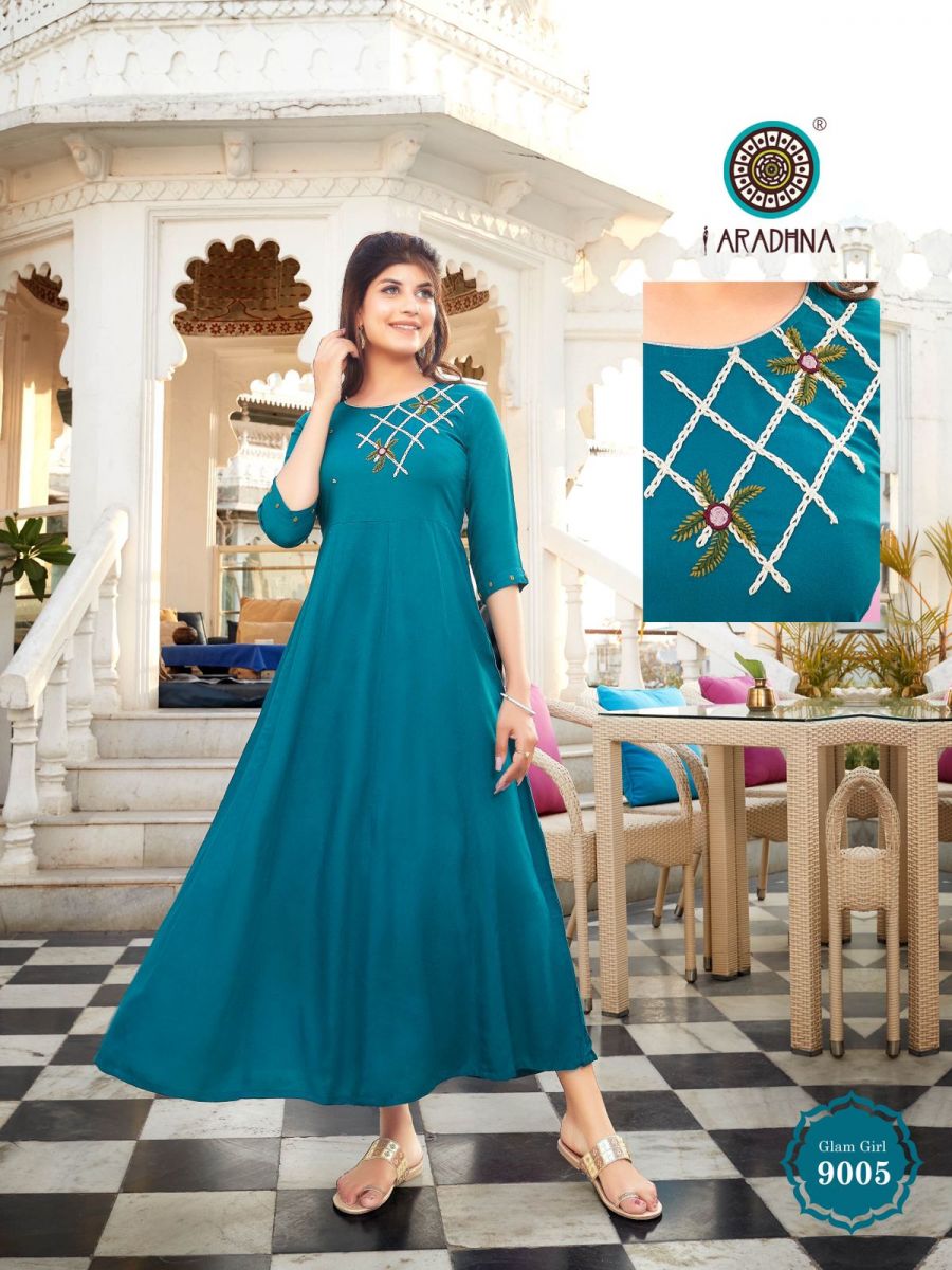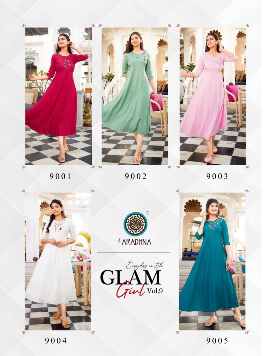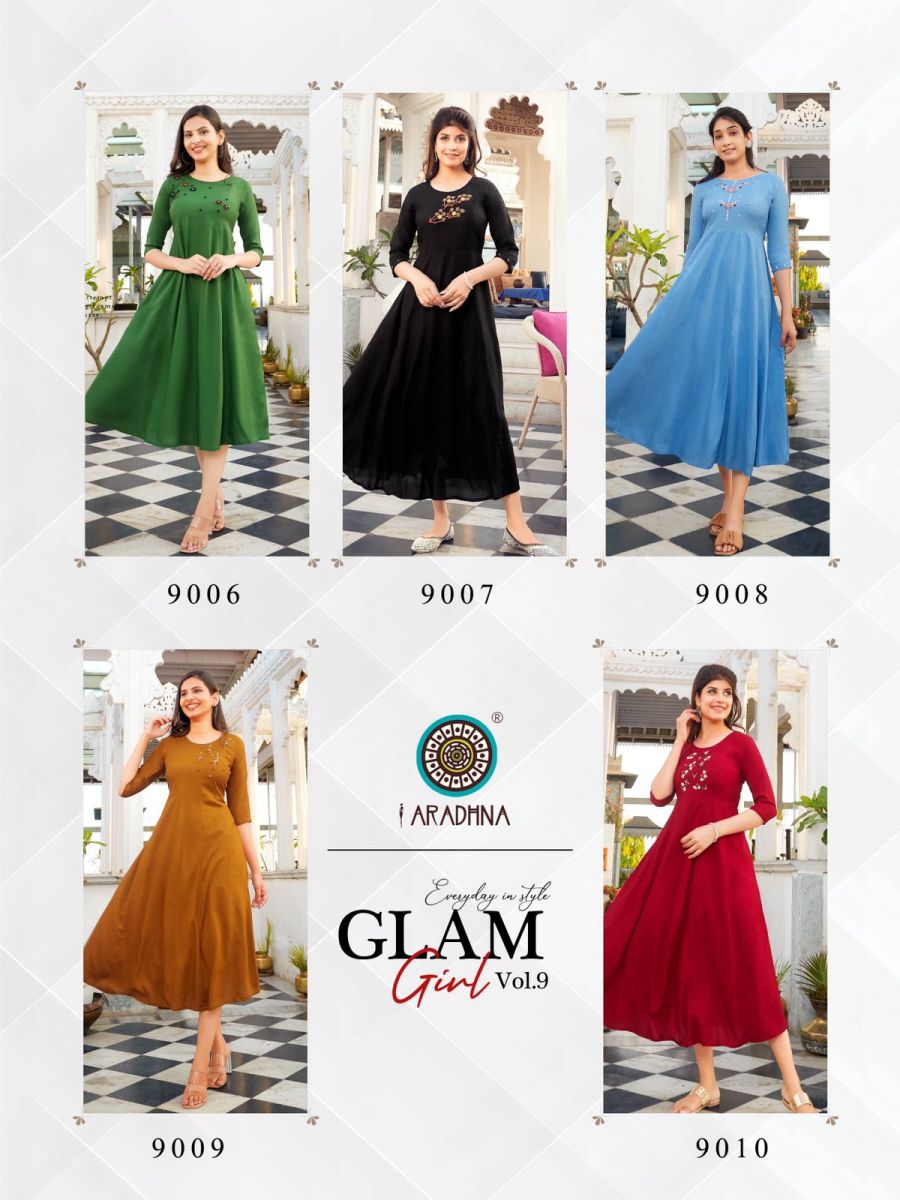 Glam Girl Vol-9 Kurti By Aradhana Designer With Work Long Gown Style Rayon Kurtis Are Available At Wholesale Price