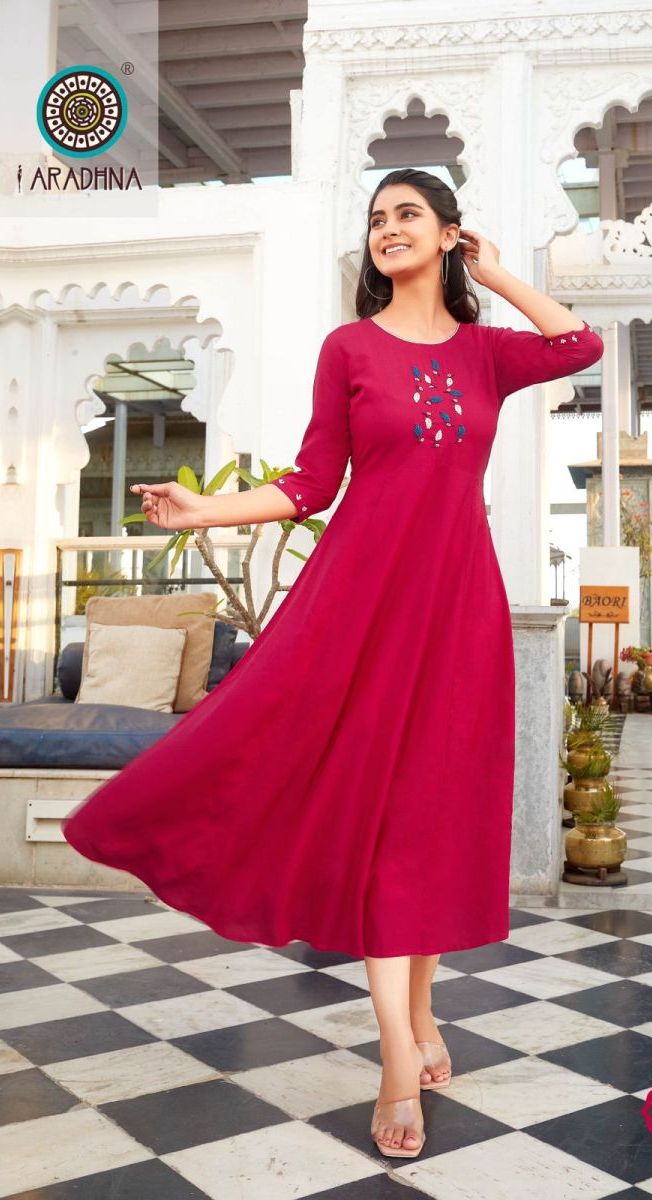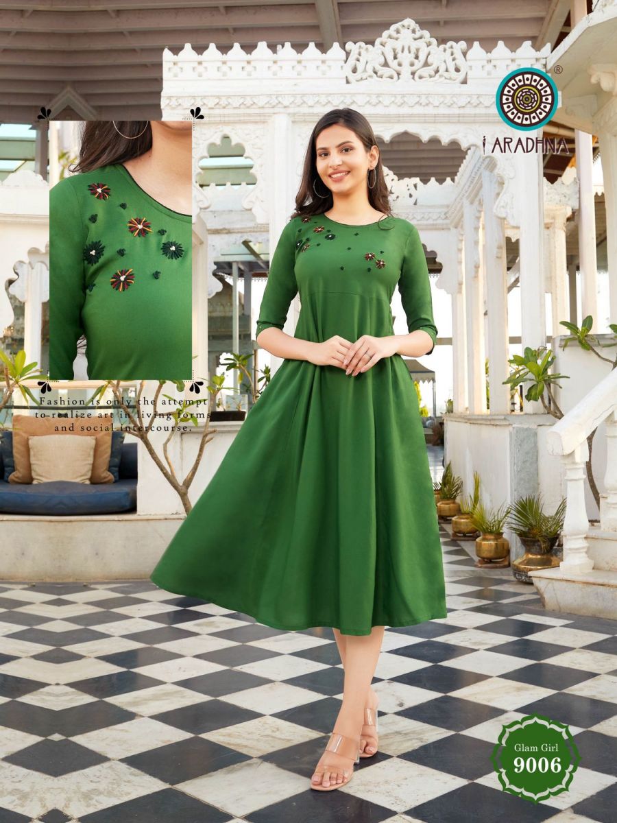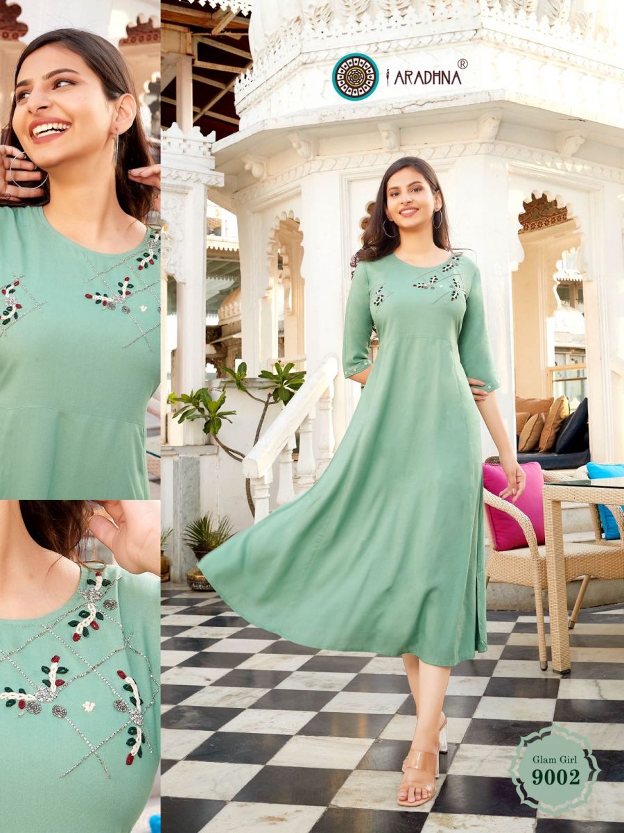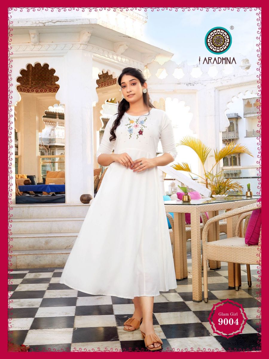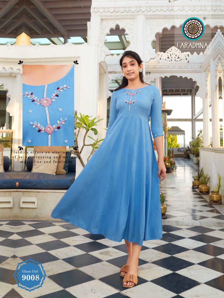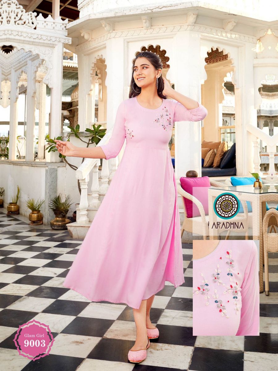 Glam Girl Vol-9 Kurti By Aradhana Designer With Work Long Gown Style Rayon Kurtis Are Available At Wholesale Price