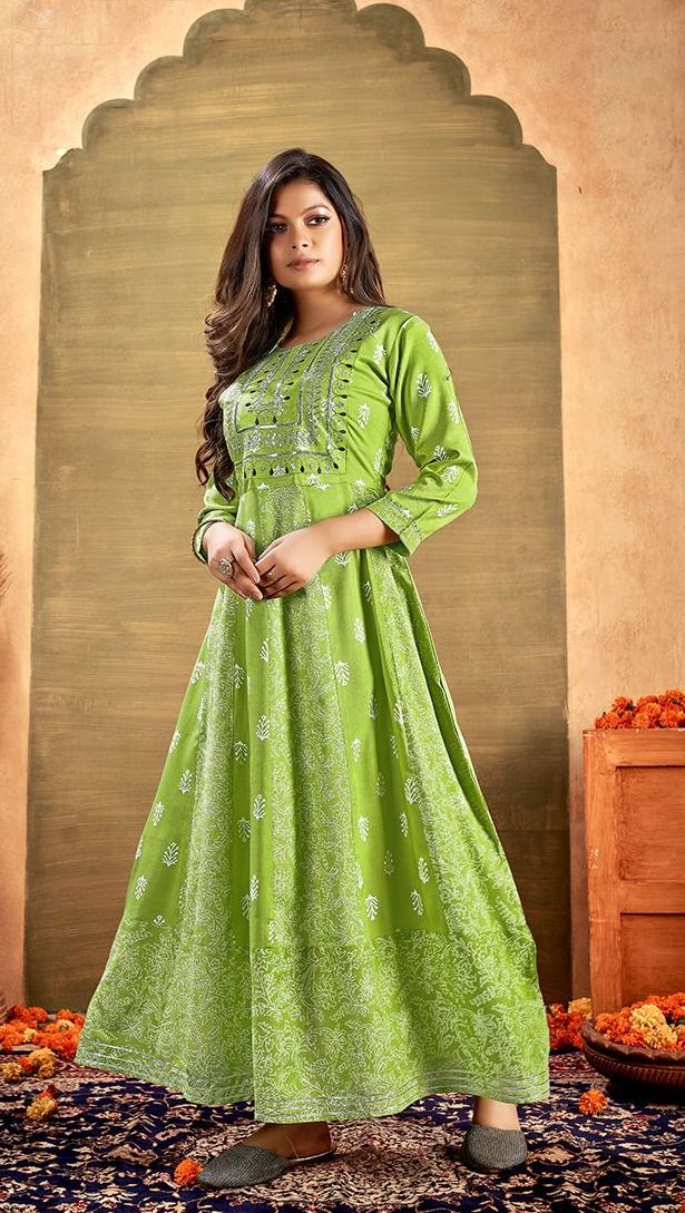 Glamour Vol-12 Kurti By Banwery Designer With Printed And Work Flair Rayon Kurtis Are Available At Wholesale Price