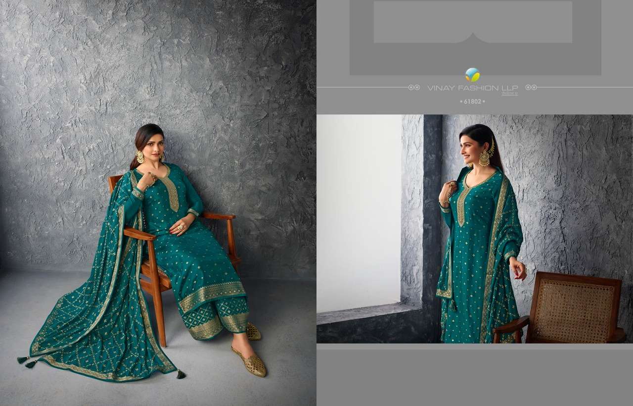 GLAZZE VOL-2 BY VINAY DESIGNER WITH EMBROIDERY WORK DOLA JACQUARD SUITS ARE AVAILABLE AT WHOLESALE PRICE