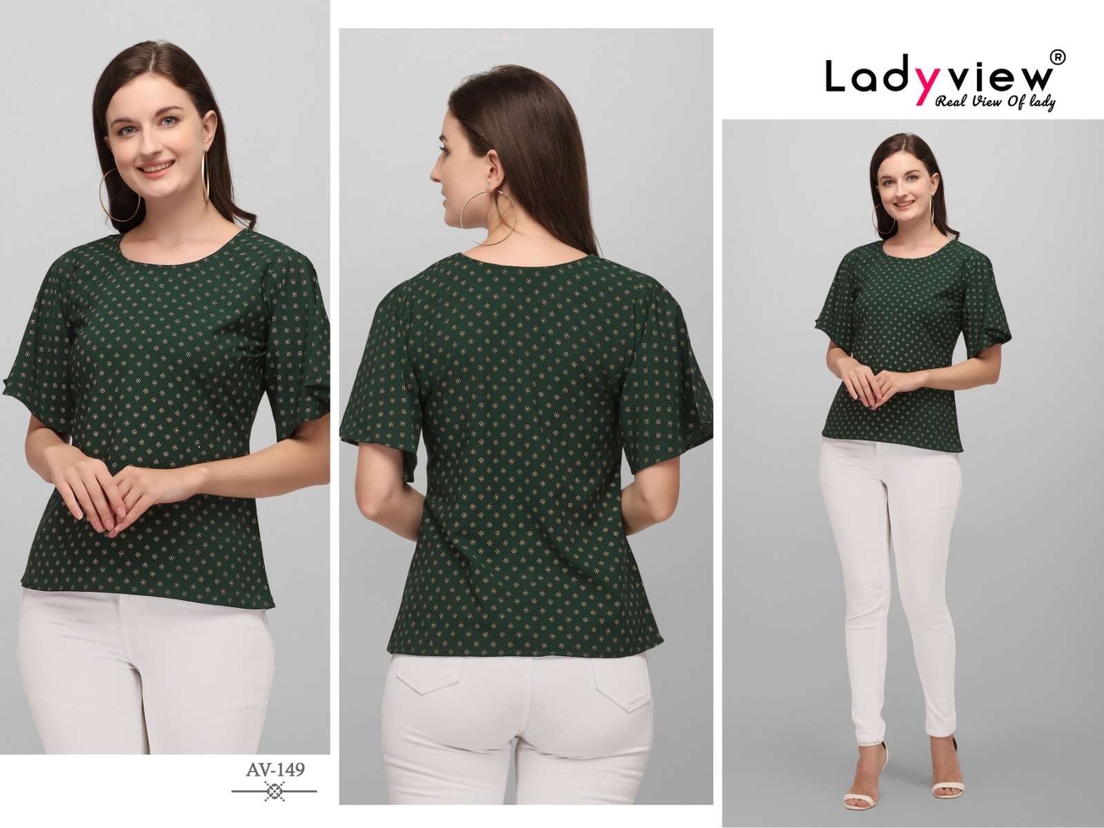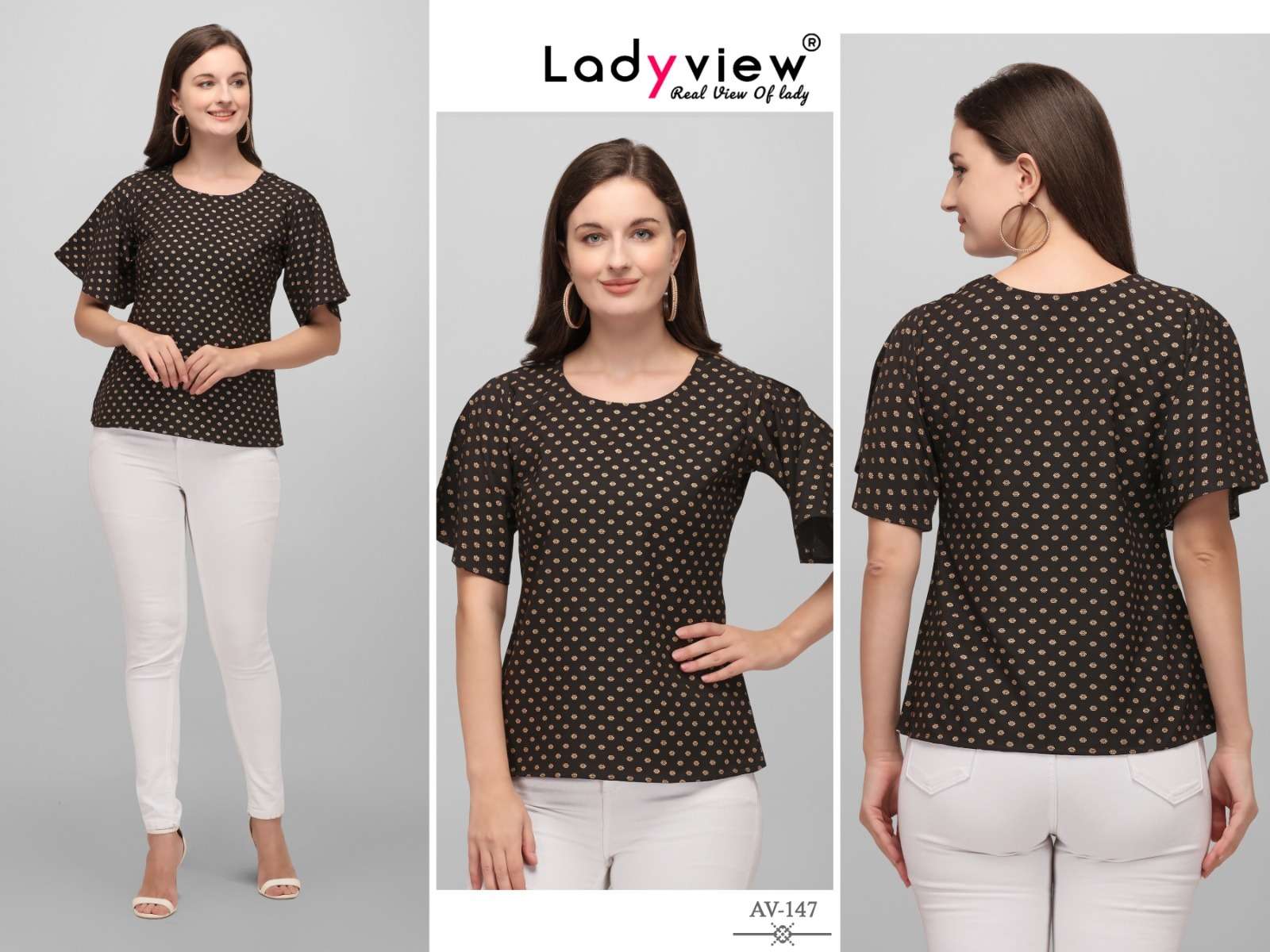 GOLDY VOL-1 TOP BY LADYVIEW DESIGNER WITH FOIL PRINTED HEAVY CREPE TOPS ARE AVILABLE AT WHOLESALE PRICE