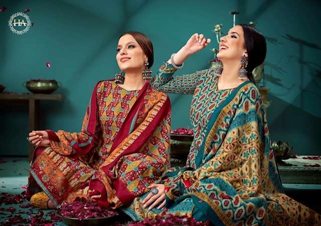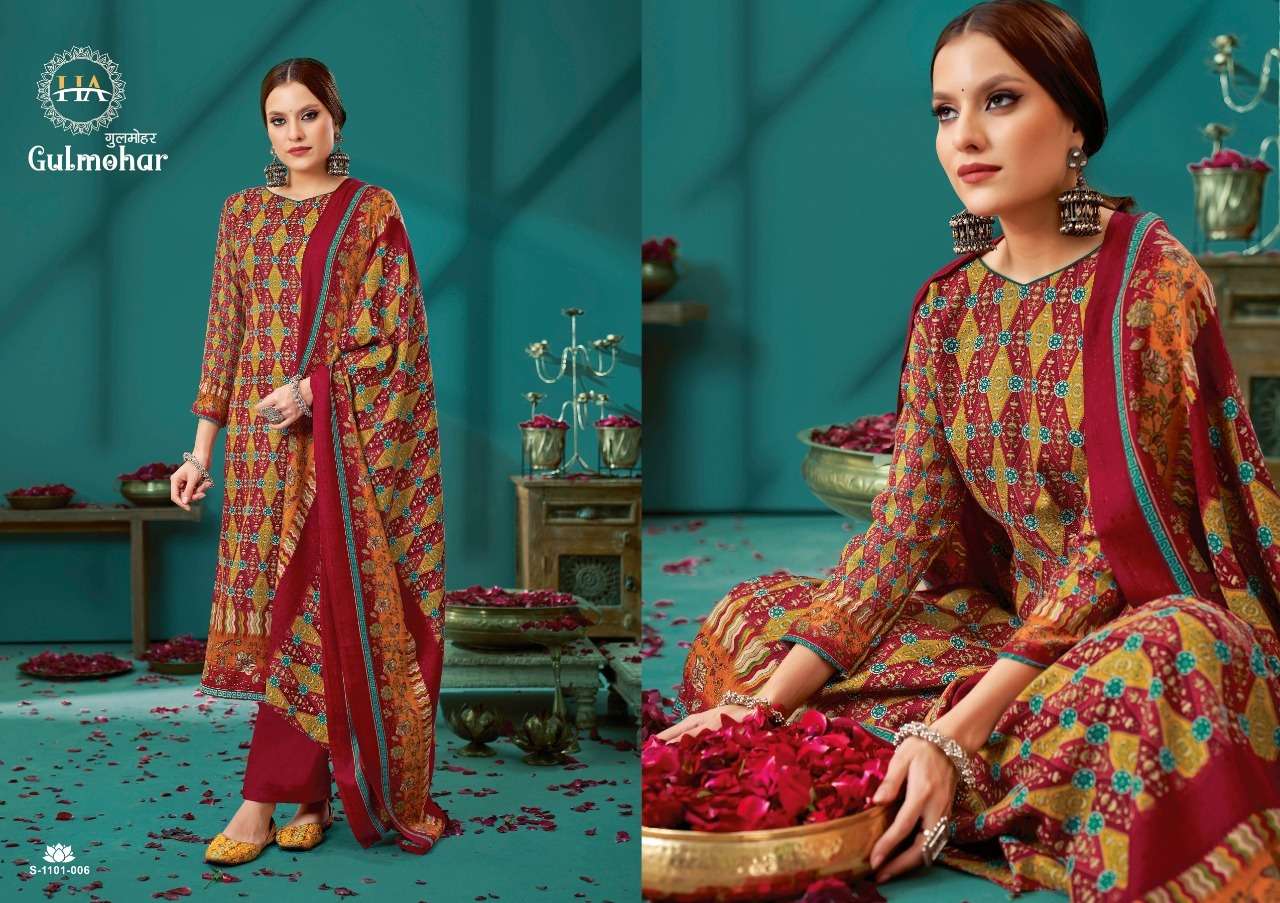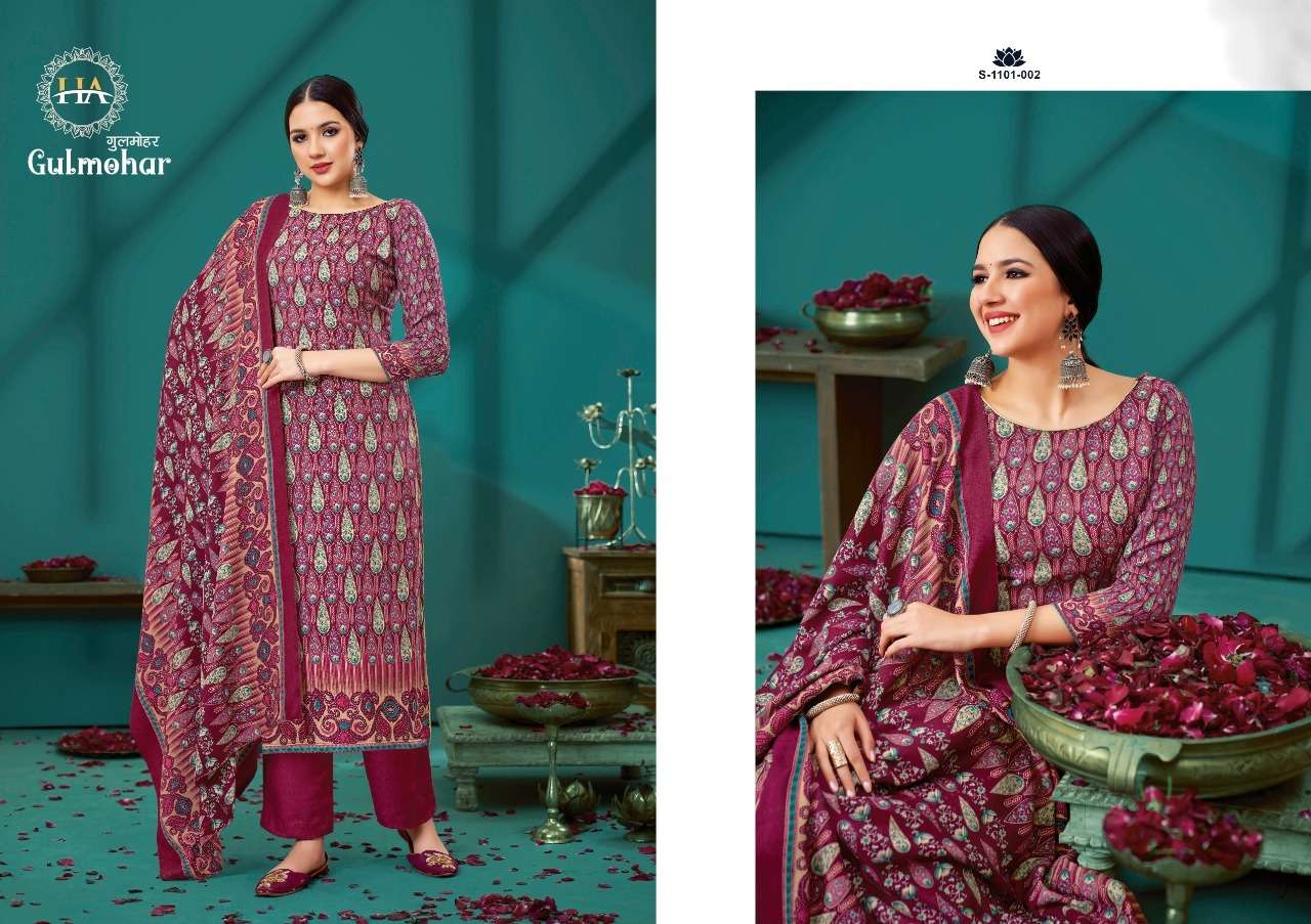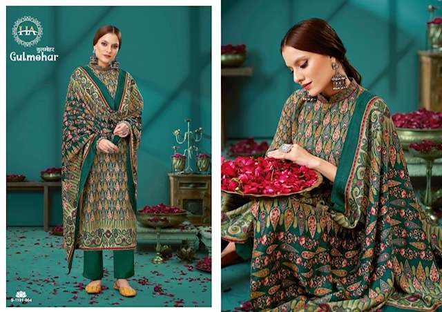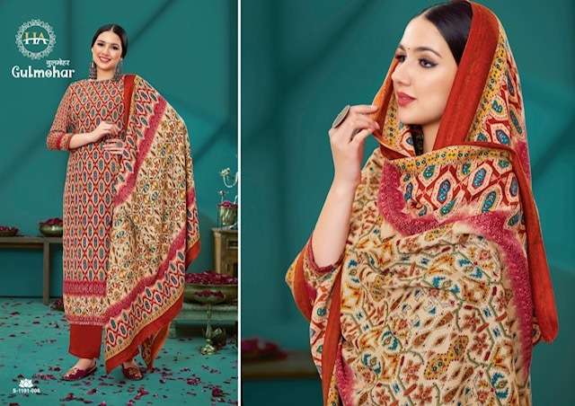 GULMOHAR BY HARSHIT FASHION DESIGNER WITH PRINTED WOOL PASHMINA SUITS ARE AVAILABLE AT WHOLESALE PRICE