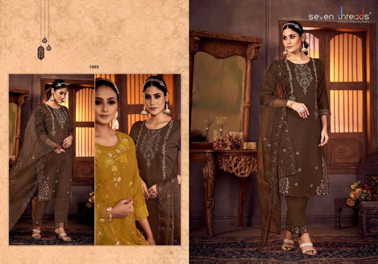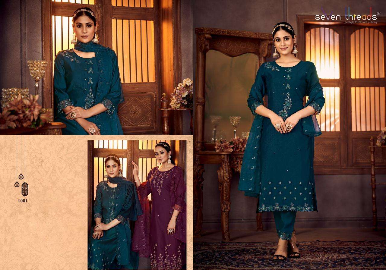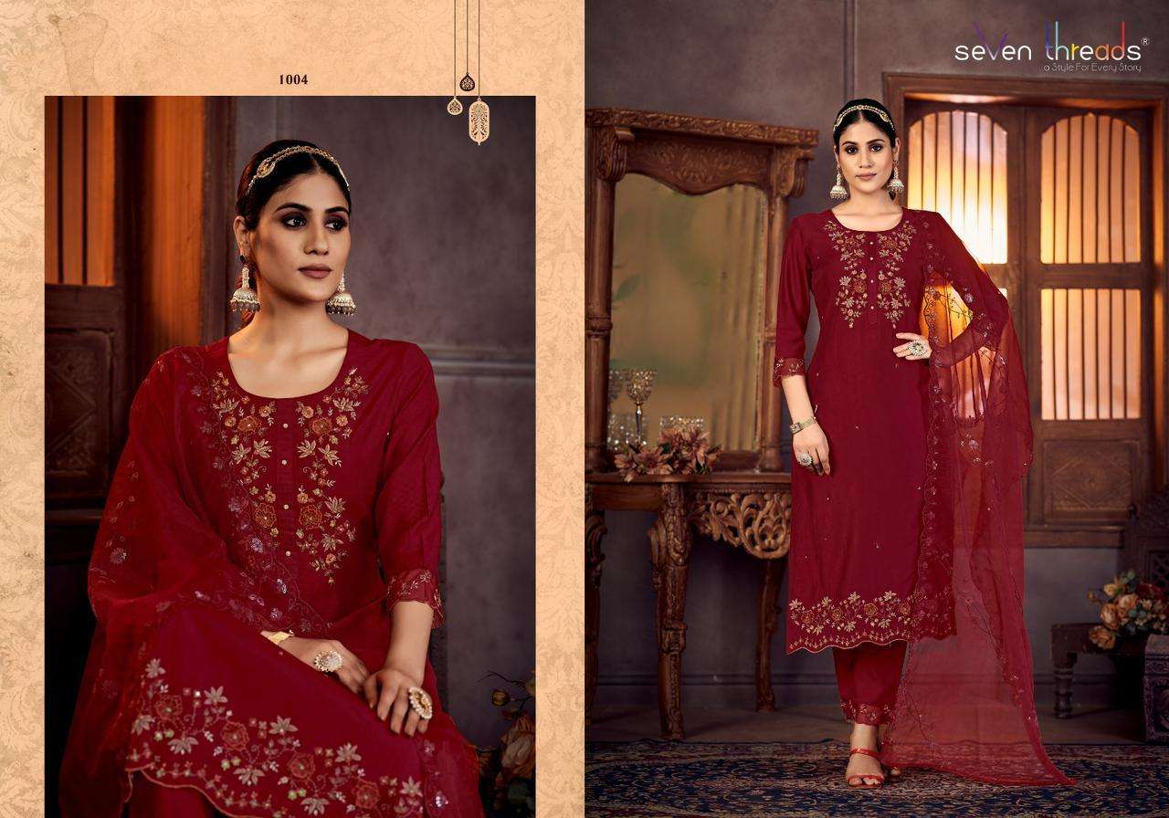 GULMOHAR KURTI BY SEVEN THREADS DESIGNER WITH WORK VISCOSE SILK KURTI WITH PANT AND DUPATTA ARE AVAILABLE AT WHOLESALE PRICE