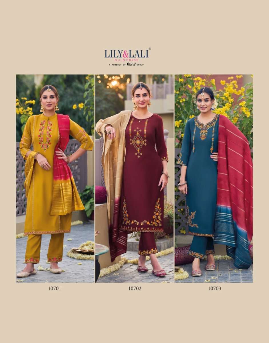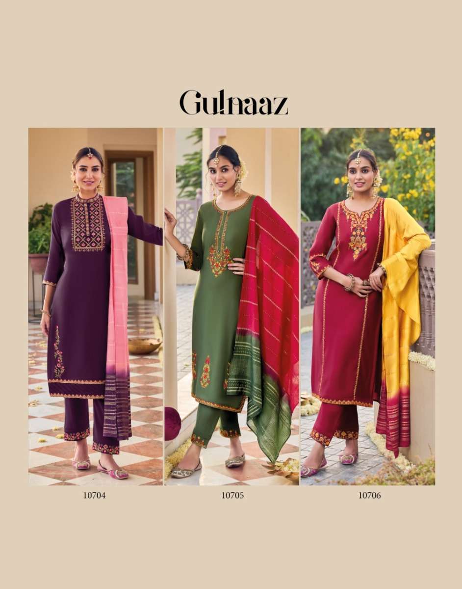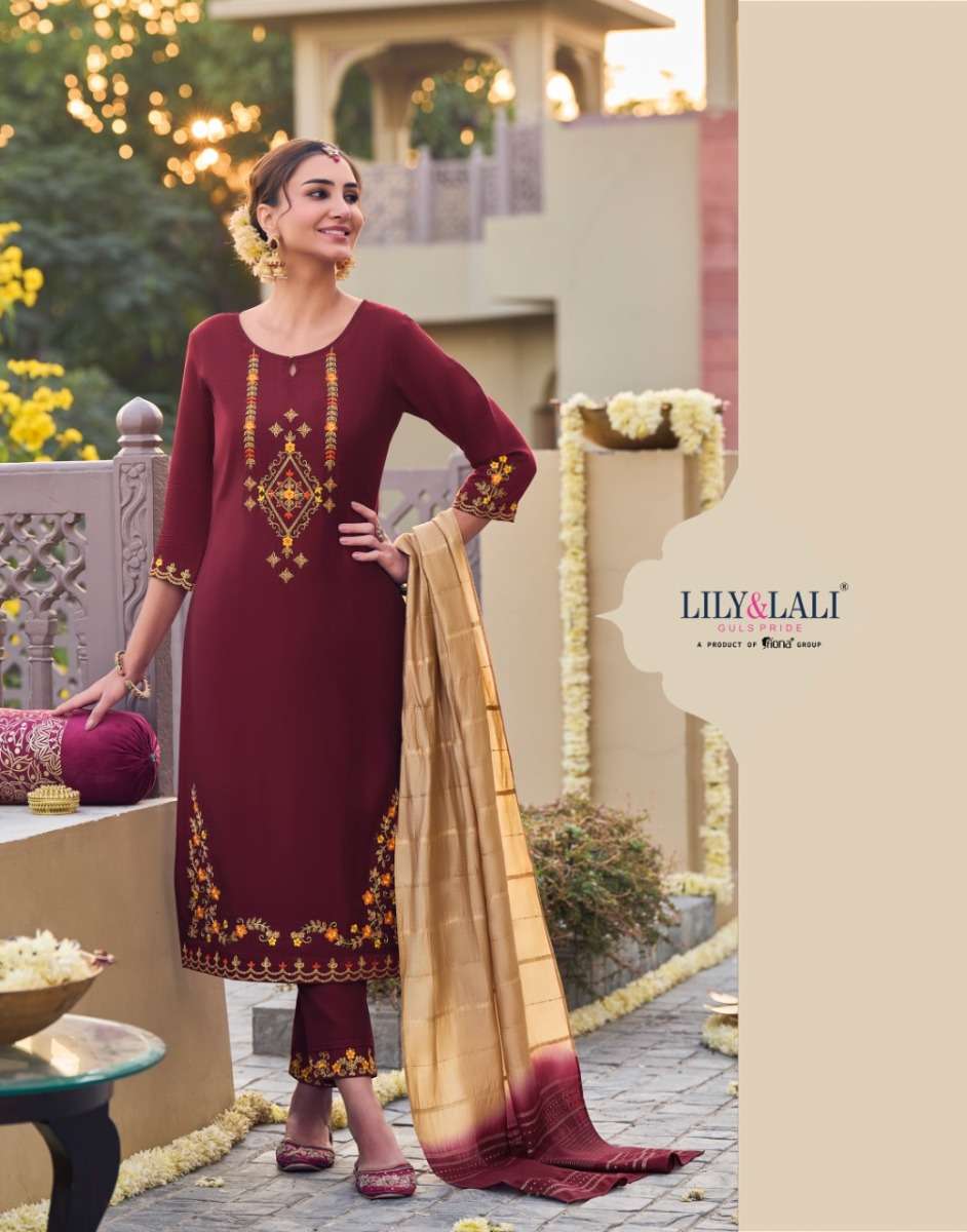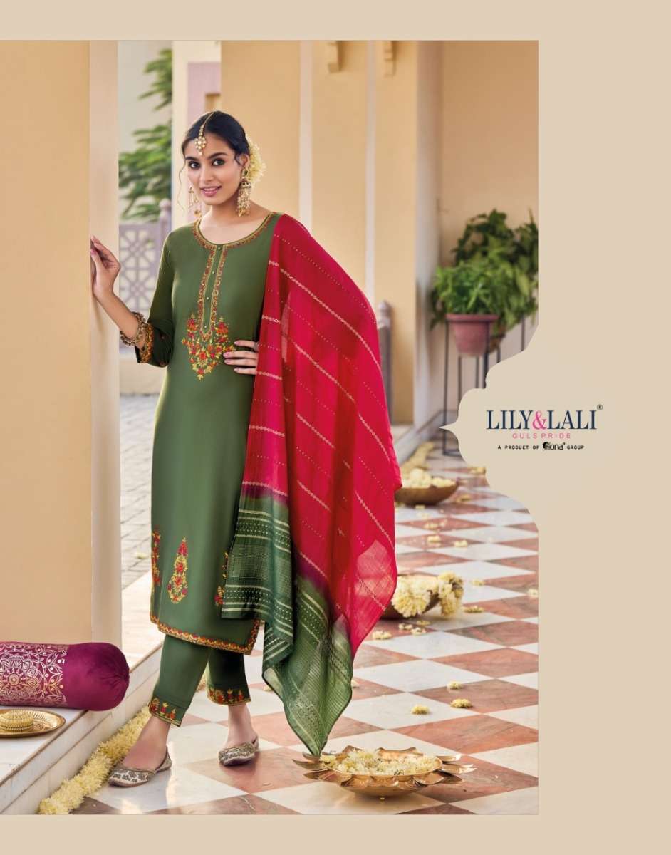 GULNAAZ KURTI BY LILY & LALI DESIGNER WITH WORK SILK KURTI WITH PANT AND DUPATTA ARE AVAILABLE AT WHOLESALE PRICE
