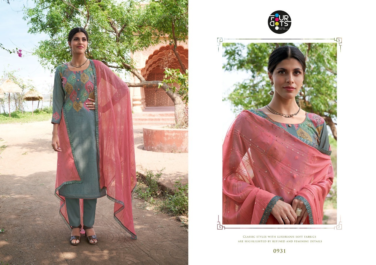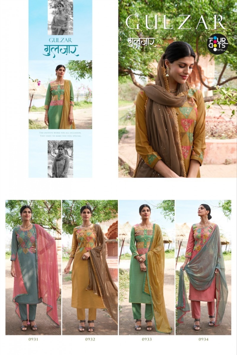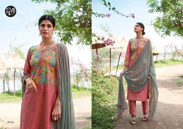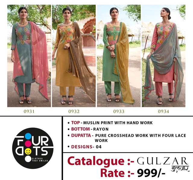 Gulzar By Four Dots Designer With Digital Print And Hand Work Muslin Suits Are Available At Wholesale Price