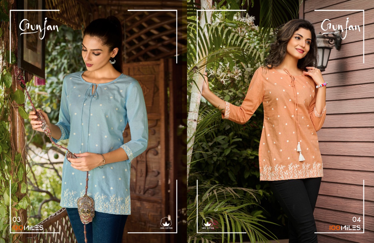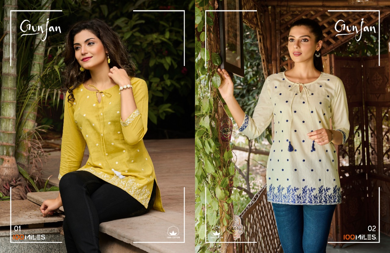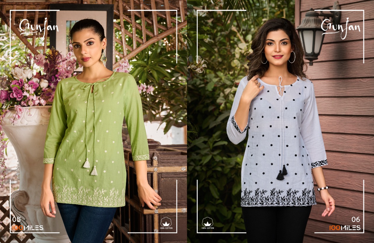 Gunjan Top By 100 Miles Designer With Embroidery Work Cotton Short Tops Are Available At Wholesale Price