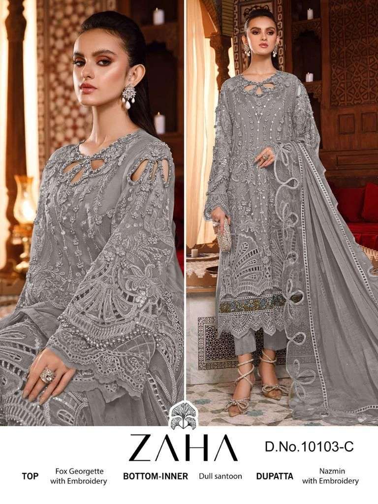 HABEEBA VOL-1 BY ZAHA DESIGNER WITH WORK GEORGETTE PAKISTANI STYLE SUITS ARE AVAILABLE AT WHOLESALE PRICE