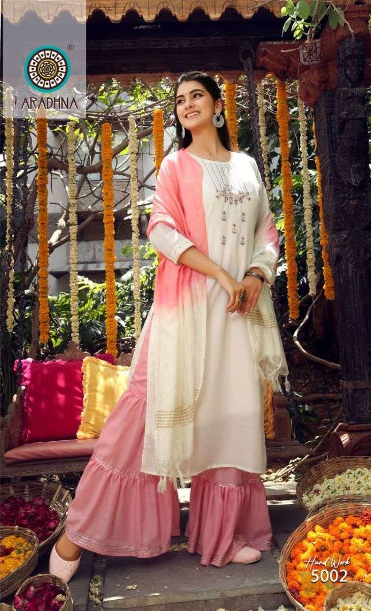HANDWORK VOL-5 KURTI BY ARADHANA DESIGNER WITH HAND WORK COTTON SILK KURTI WITH SHARARA AND DUPATTA ARE AVAILABLE AT WHOLESALE PRICE