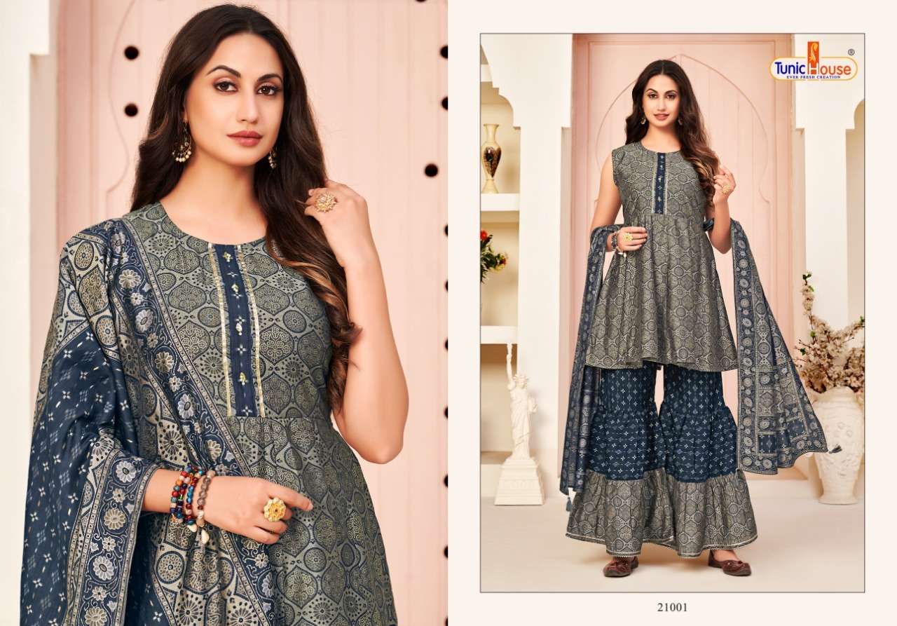 HARLIN VOL-2 BY TUNIC HOUSE DESIGNER WITH PRINTED MUSLIN TOP WITH SHARARA AND DUPATTA ARE AVAILABLE AT WHOLESALE PRICE