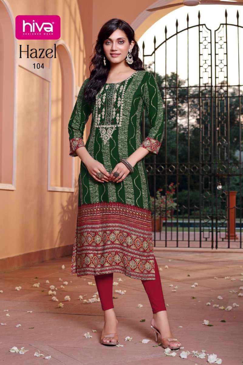 HAZEL KURTI BY HIVA DESIGNER WITH MIRROR WORK RAYON KURTIS ARE AVAILABLE AT WHOLESALE PRICE