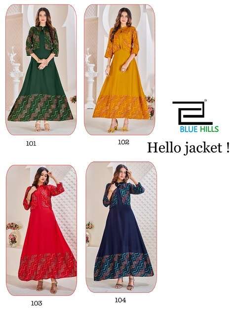 HELLO JACKET GOWN BY BLUE HILLS DESIGNER RAYON GOWN WITH RAYON JACKET ARE AVAILABLE AT WHOLESALE PRICE