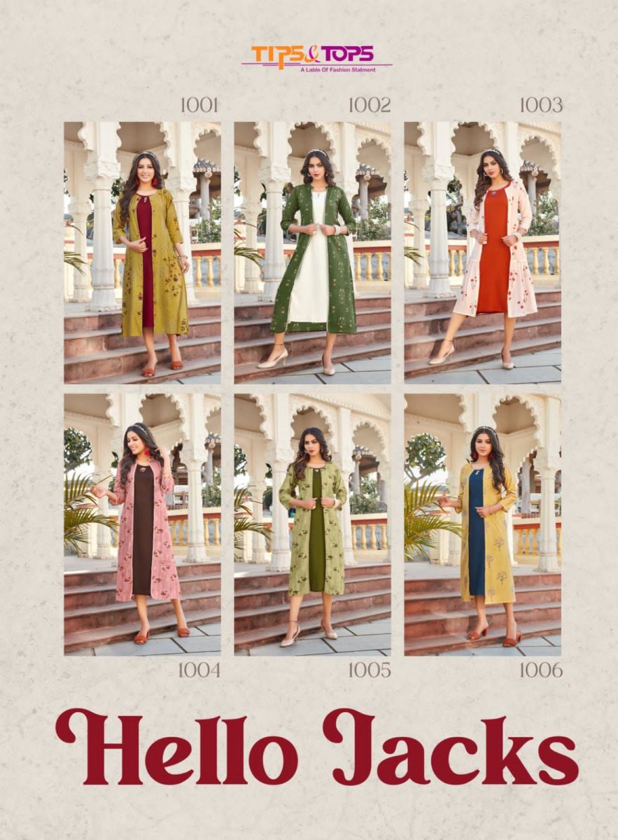 Hello Jacks Kurti By Tips & Tops Designer With Work And Printed Fancy Kurti With Jacket Are Available At Wholesale Price