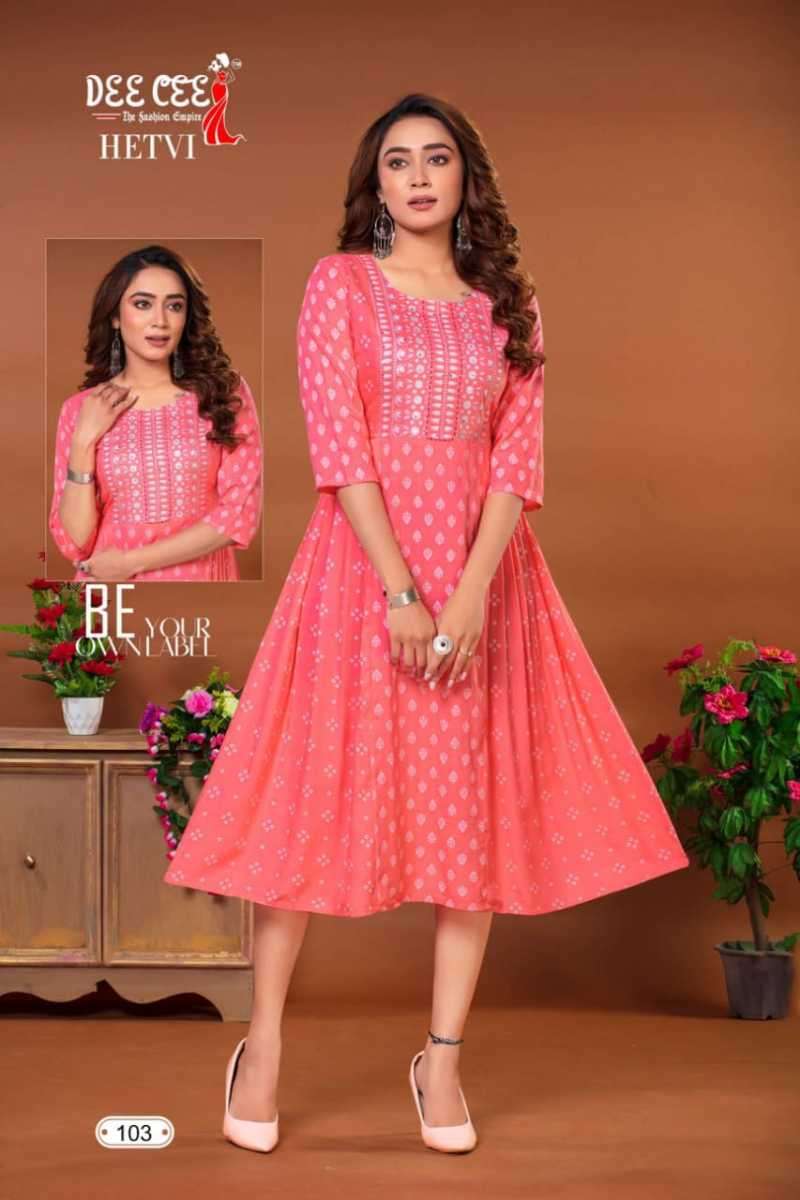 | Name: | dee cee-HETVI SERIES 101 TO 106 KURTI BY DEECEE |