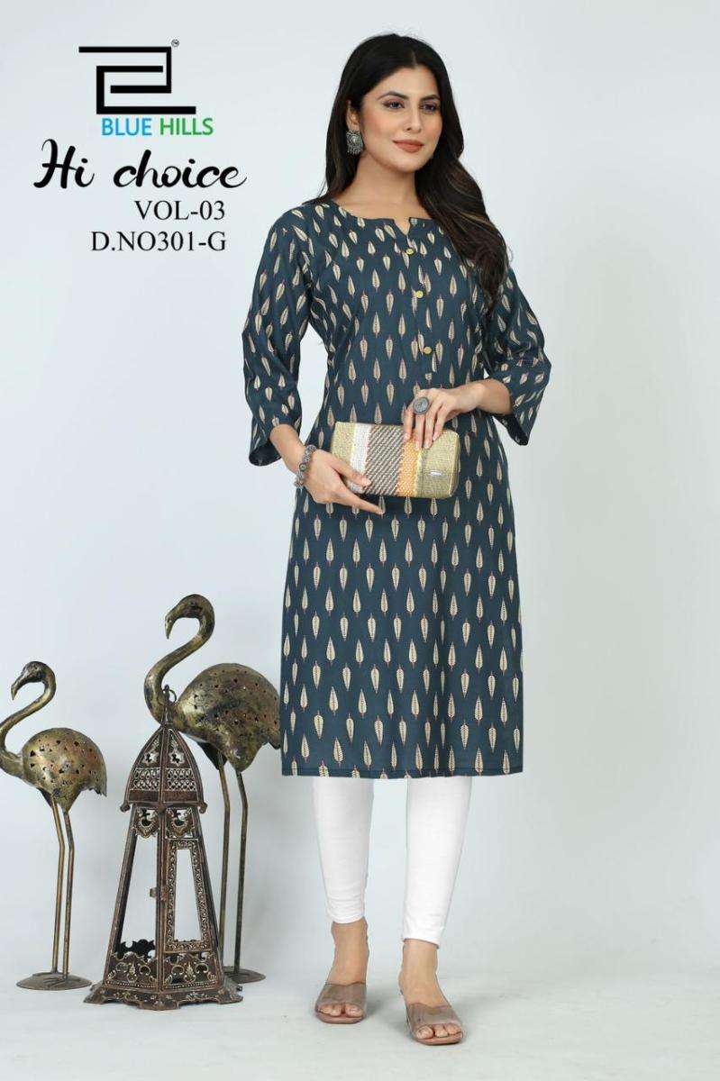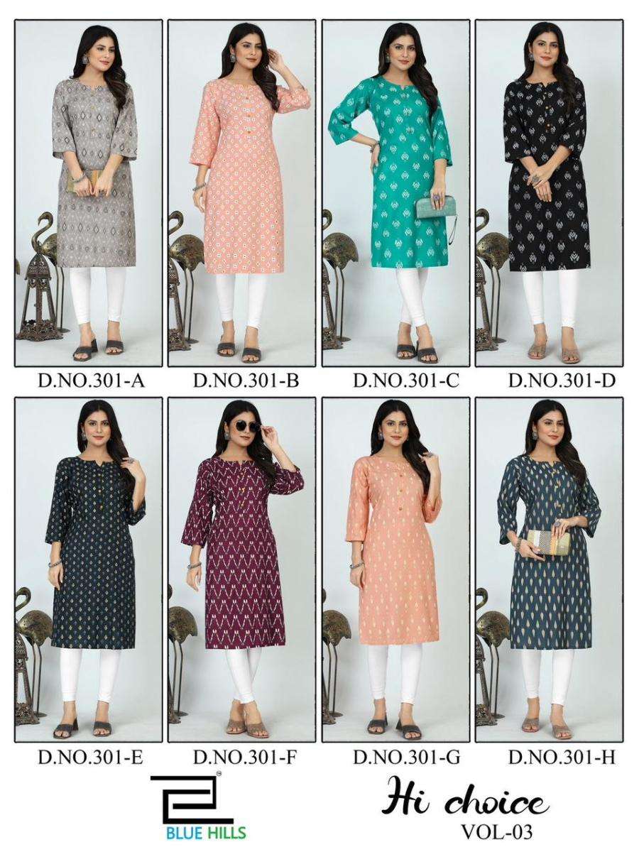 | Name: | blue hills-HI CHOICE VOL03 SERIES 301A TO 301H KURTI BY BLUE HILLS |