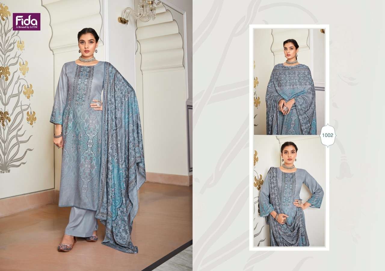 HUMAIRA BY FIDA DESIGNER WITH PRINTED AND WORK PASHMINA SUITS ARE AVAILABLE AT WHOLESALE PRICE