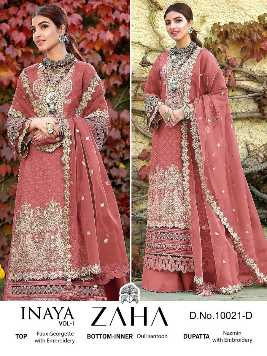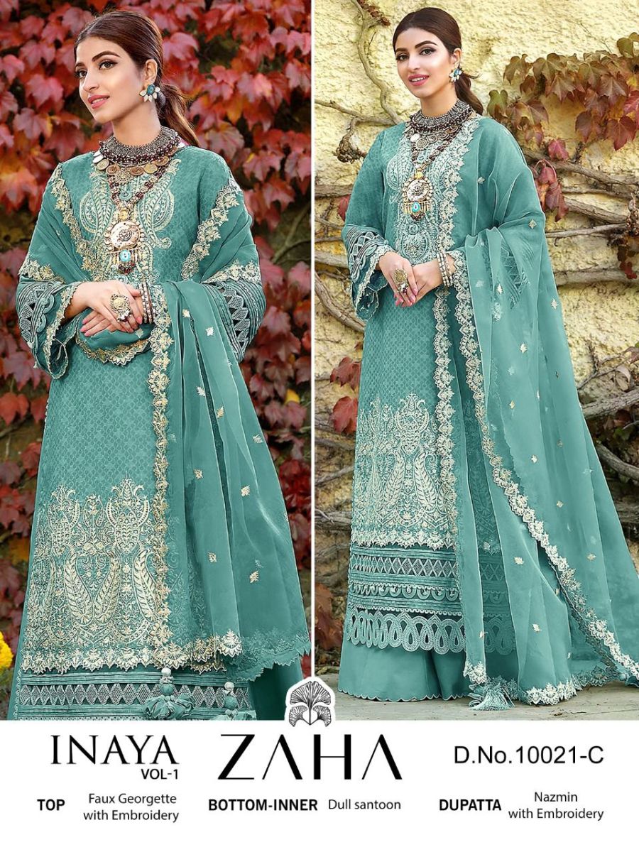 Inaya Vol-1 By Zaha Designer With Printed And Work Georgette Pakistani Style Suits Are Available In Singles At Wholesale Price