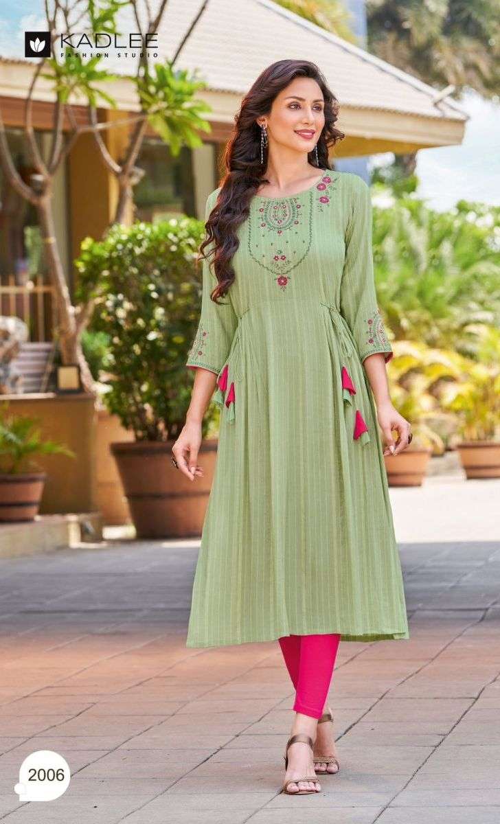 INAYAT KURTI BY KADLEE DESIGNER WITH WORK RAYON GOWN STYLE KURTIS ARE AVAILABLE AT WHOLESALE PRICE
