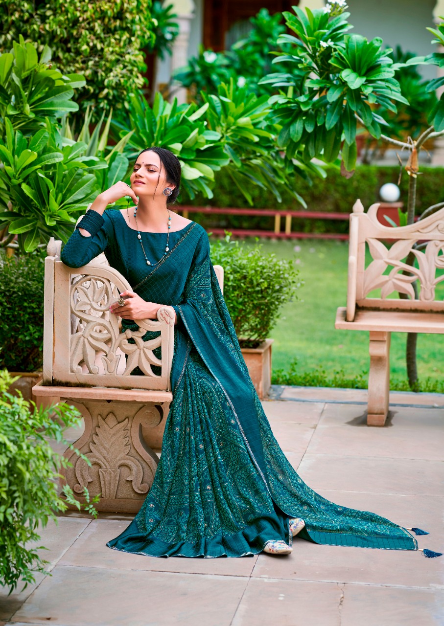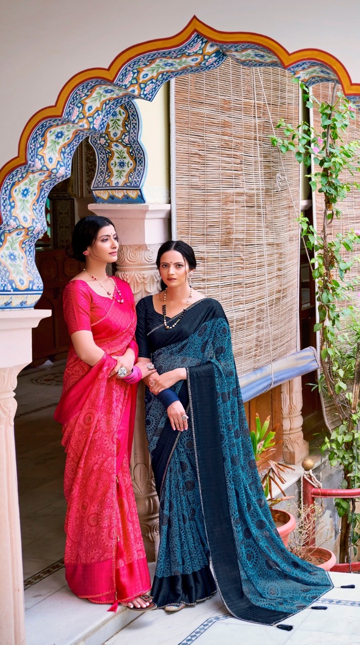 Indrani Saree By Kashvi Lt Designer With Printed And Work Party Wear Georgette Sarees Are Available At Wholesale Price