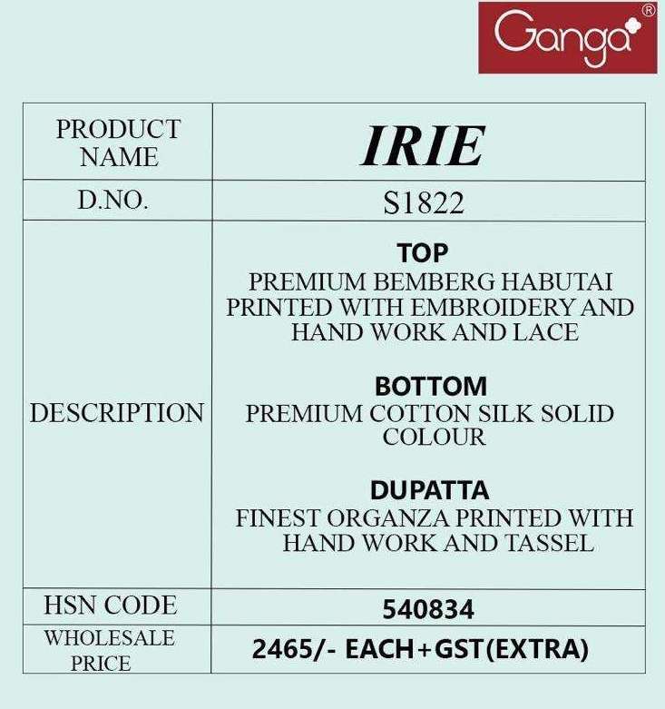 | Name: | ganga-IRIE SERIES 1822 BY GANGA |