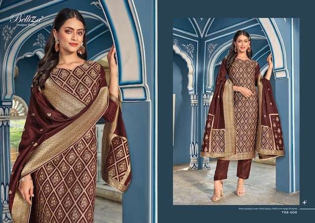 ISHANA BY BELLIZA DESIGNER WITH WORK VISCOSE DOLA JACQUARD SUITS ARE AVAILABLE AT WHOLESALE PRICE