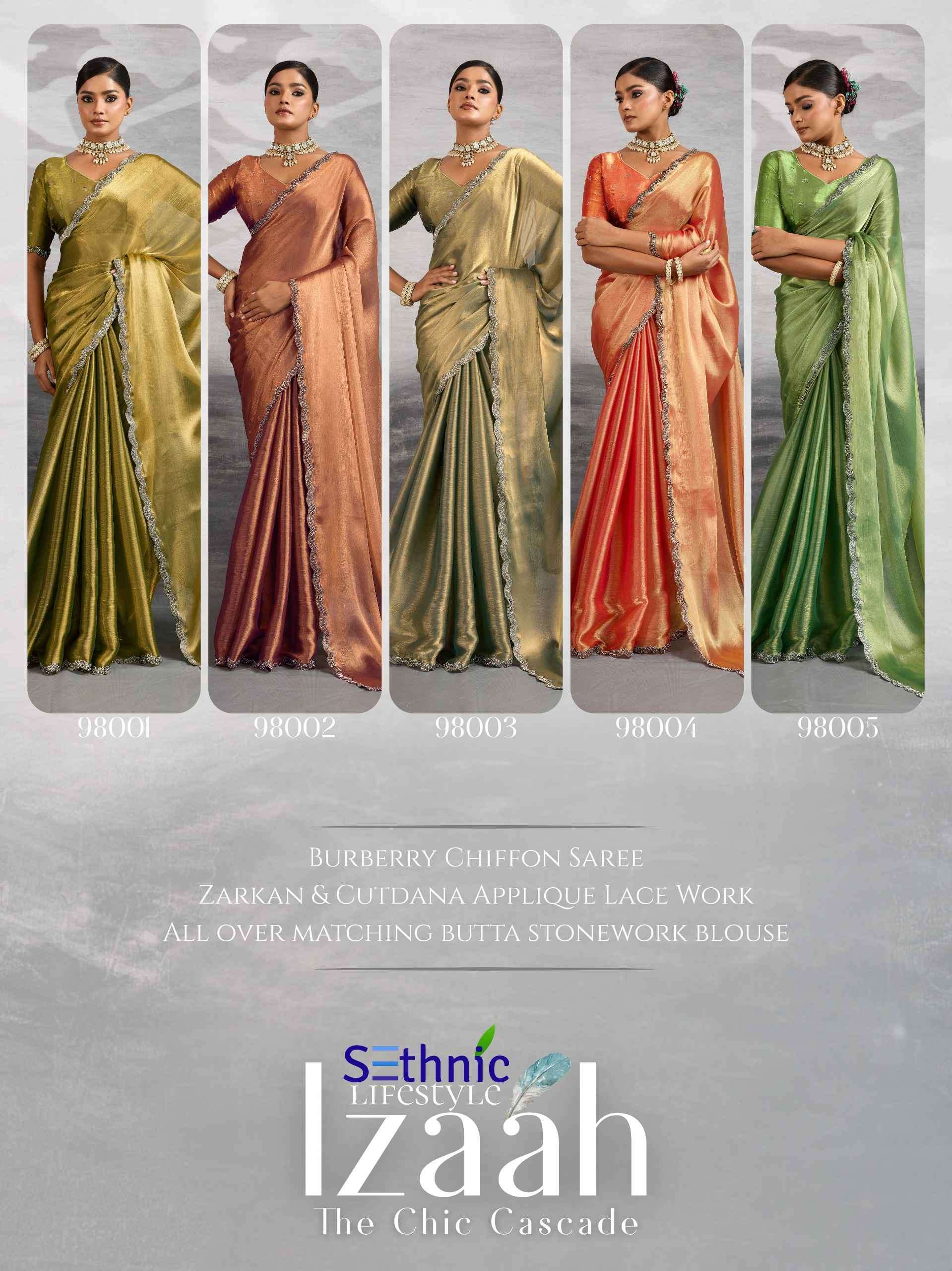 | Name: | sethnic lifestyle-IZAAH SERIES 98001 TO 98005 SAREE BY SETHNIC |