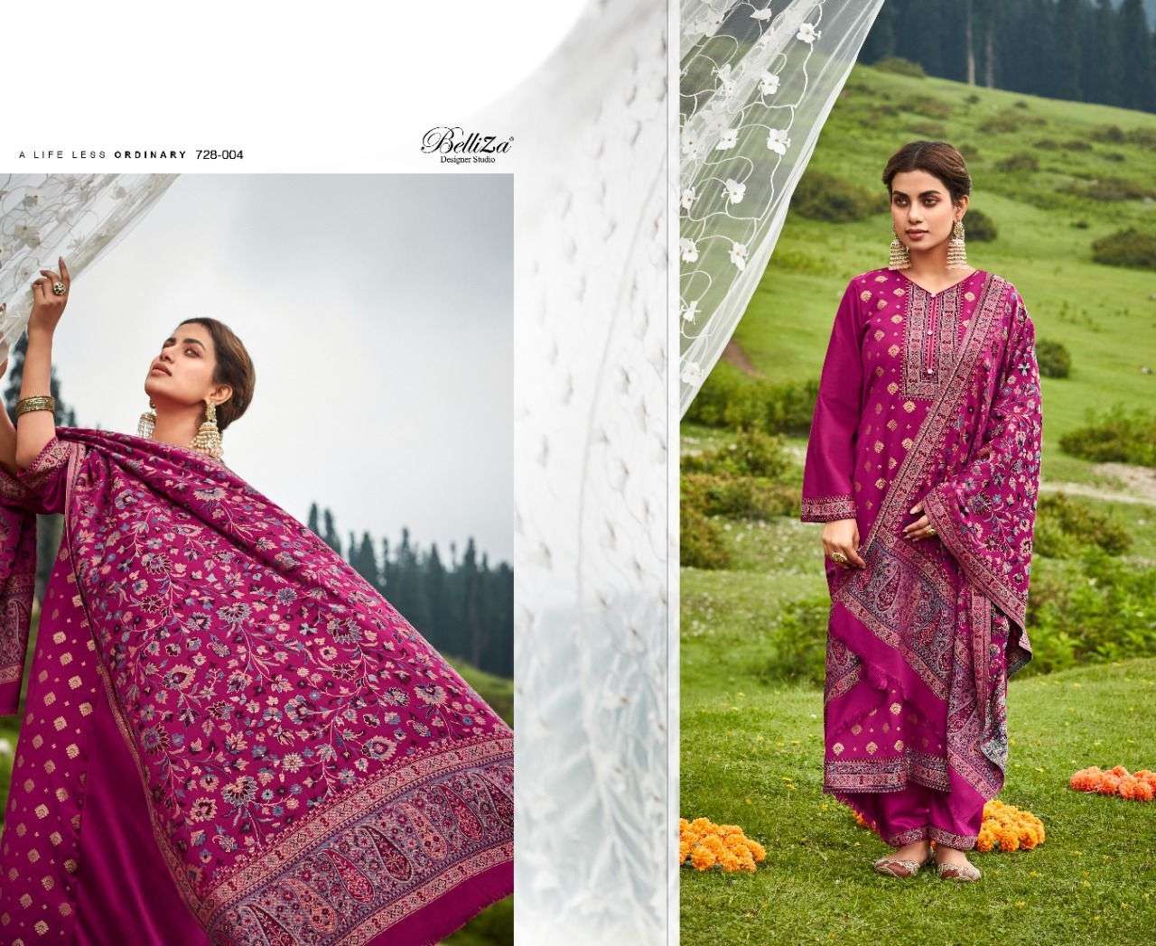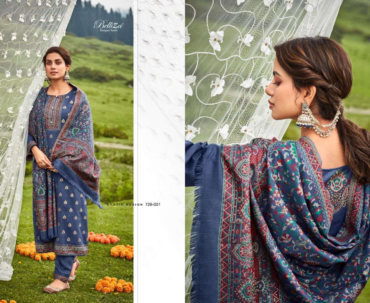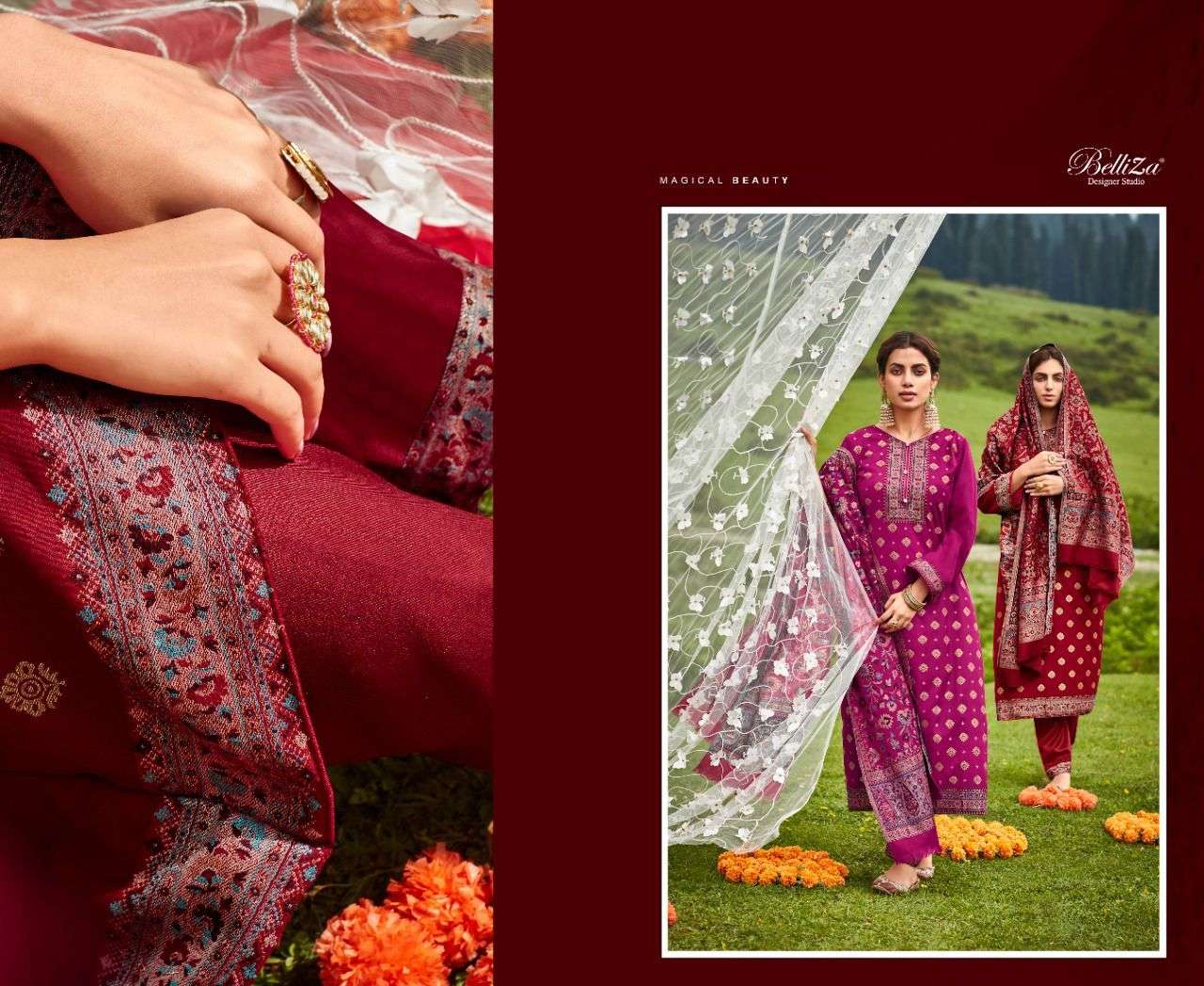 IZAARA BY BELLIZA DESIGNER WITH WORK PASHMINA SUITS ARE AVAILABLE AT WHOLESALE PRICE