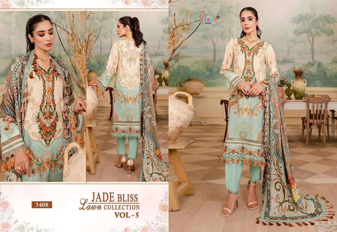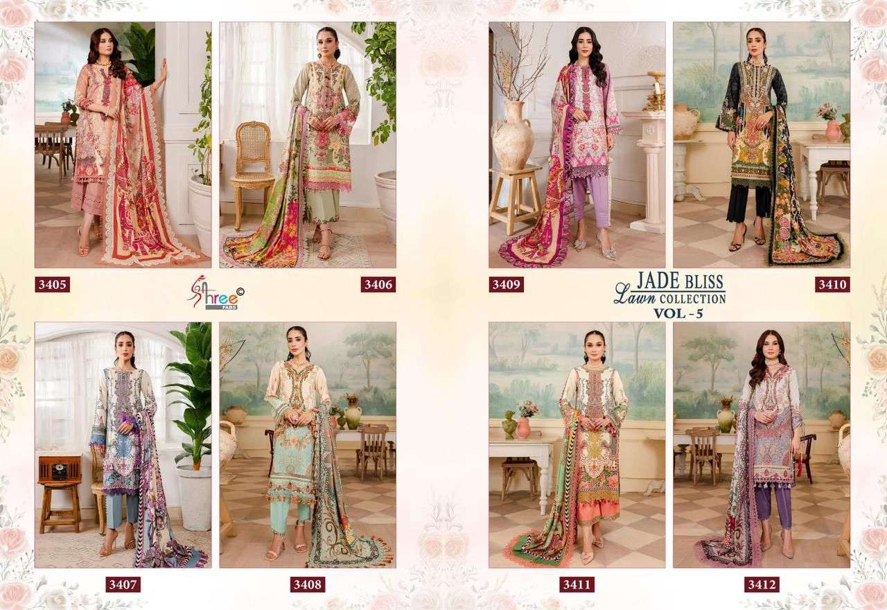| Name: | shree fabs-JADE BLISS LAWN COLLECTION VOL-5 SERIES 3405 TO 3412 BY SHREE FABS |