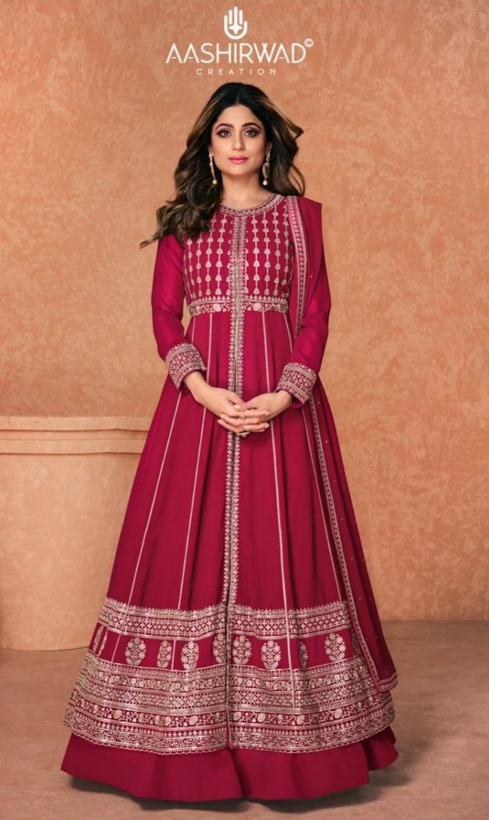 Jannat By Aashirwad Designer With Heavy Work Bridal Wear Georgette Readymade Suits Are Available In Singles At Wholesale Price