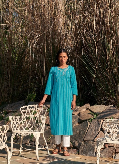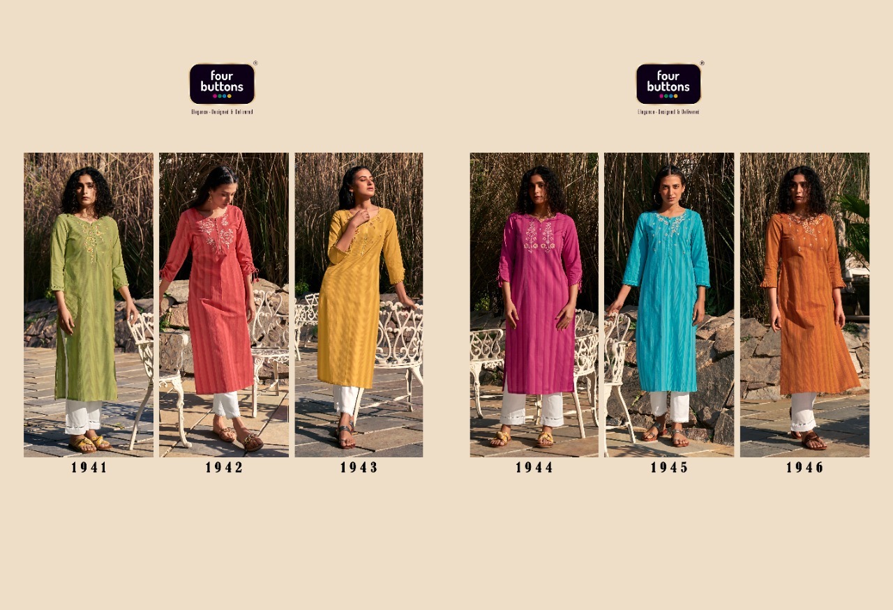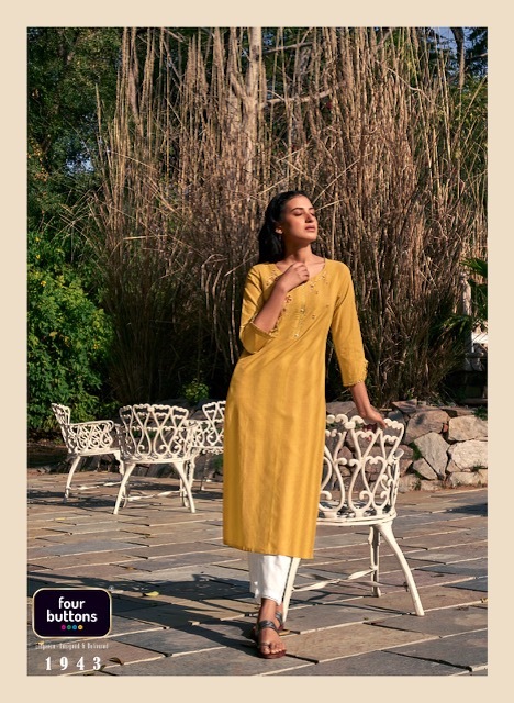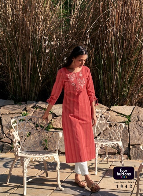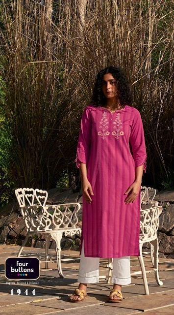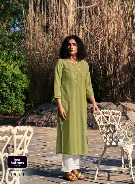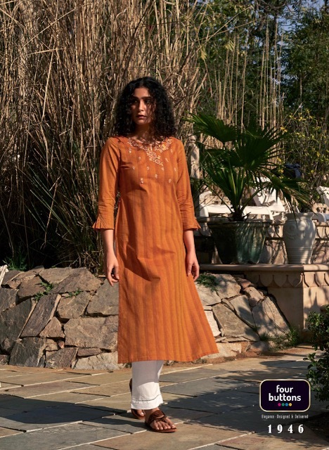 Kaaya Kurti By Four Buttons Designer With Embroidery And Hand Work Cotton Kurtis Are Available At Wholesale Price