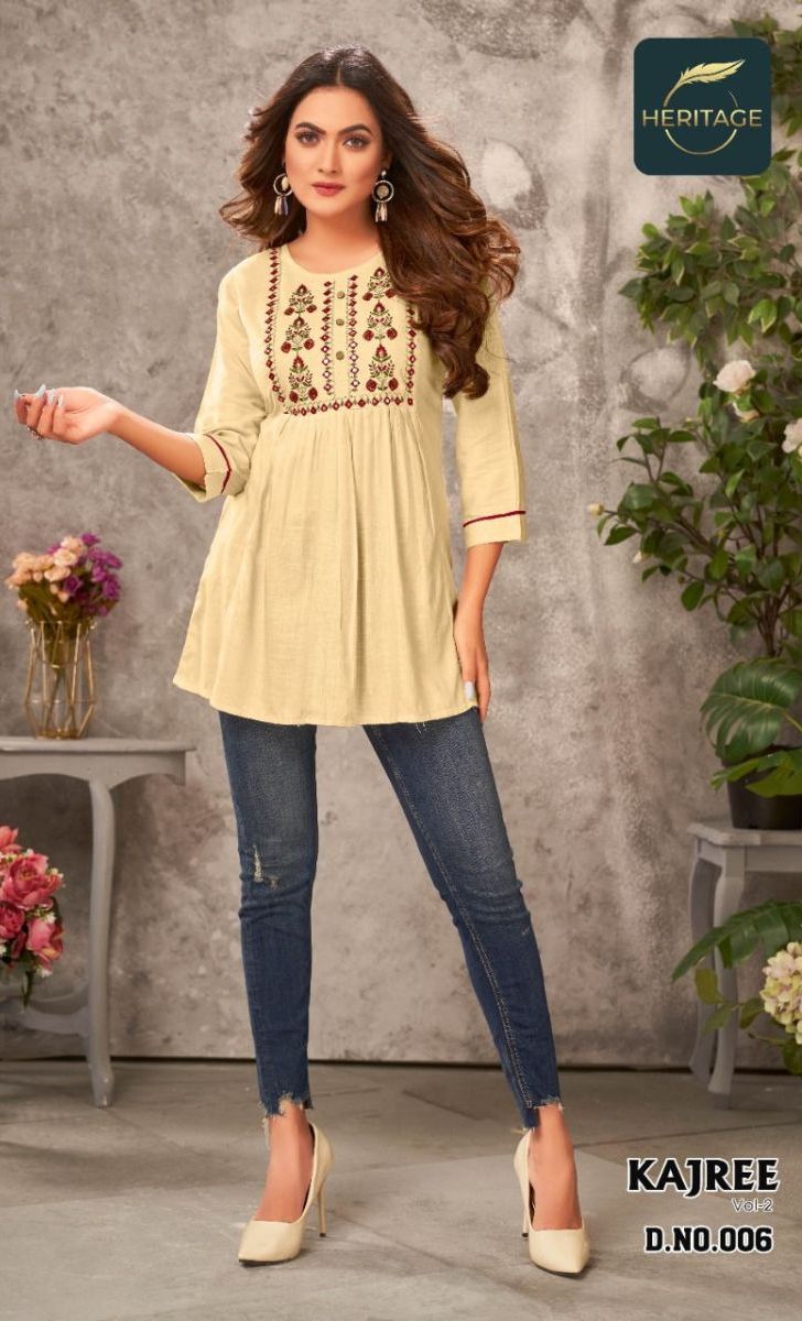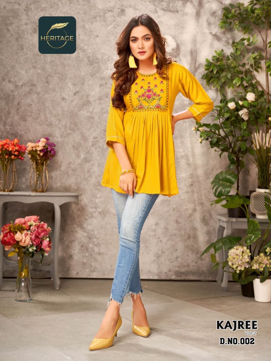 Kajree Vol-2 Top By Heritage Designer With Work Rayon Tops Are Available At Wholesale Price