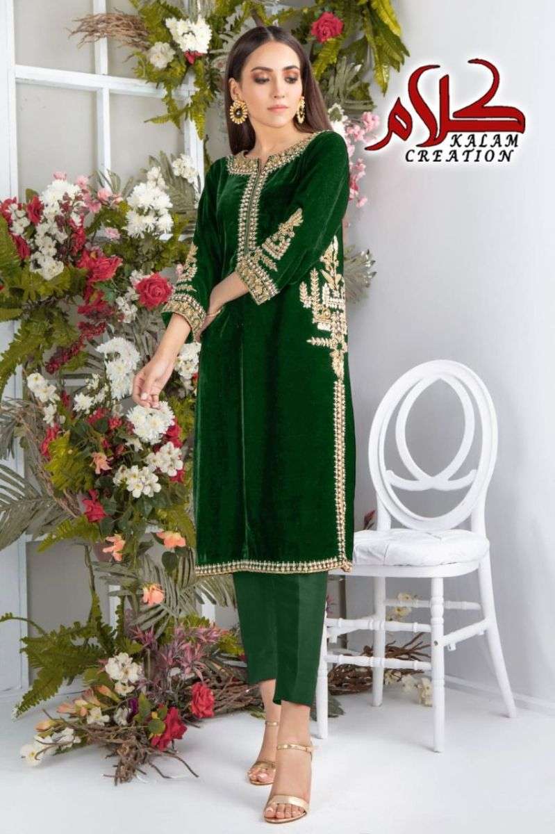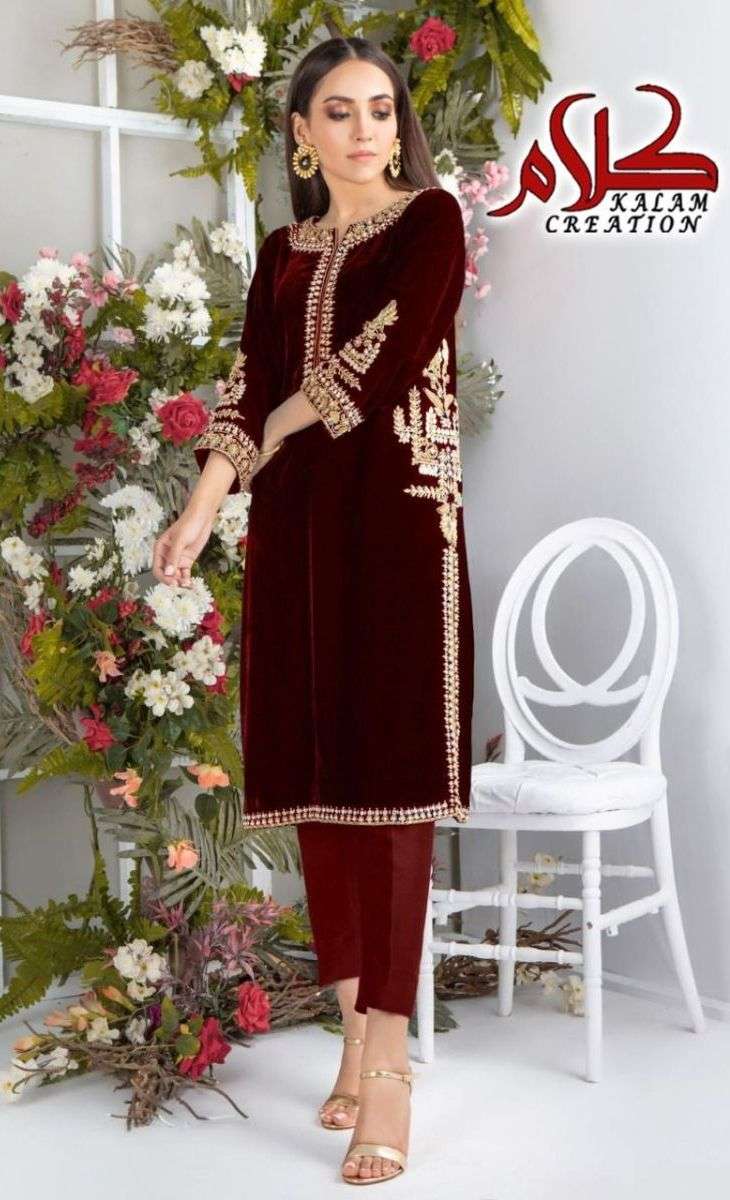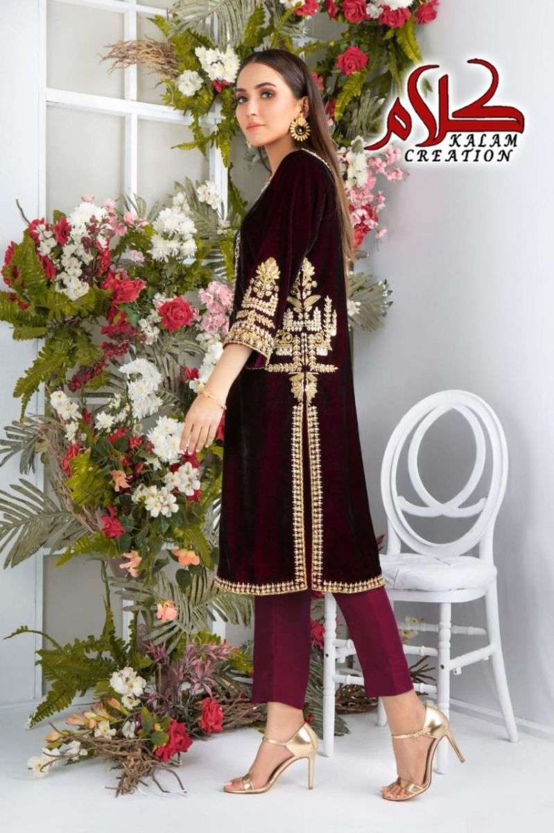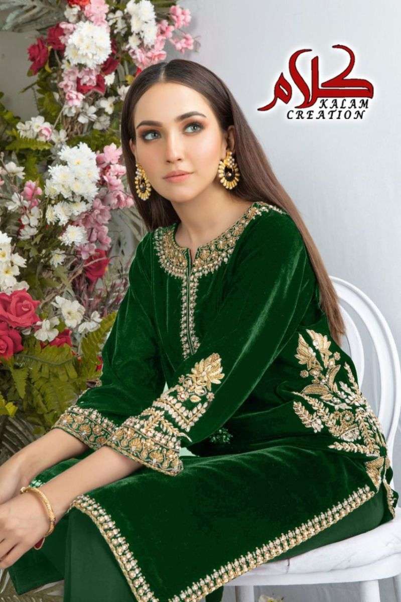 KALAM CREATION 1115 DESIGNER WITH WORK VELVET TOP AND BOTTOM COLLECTIONS ARE AVAILABLE AT WHOLESALE PRICE