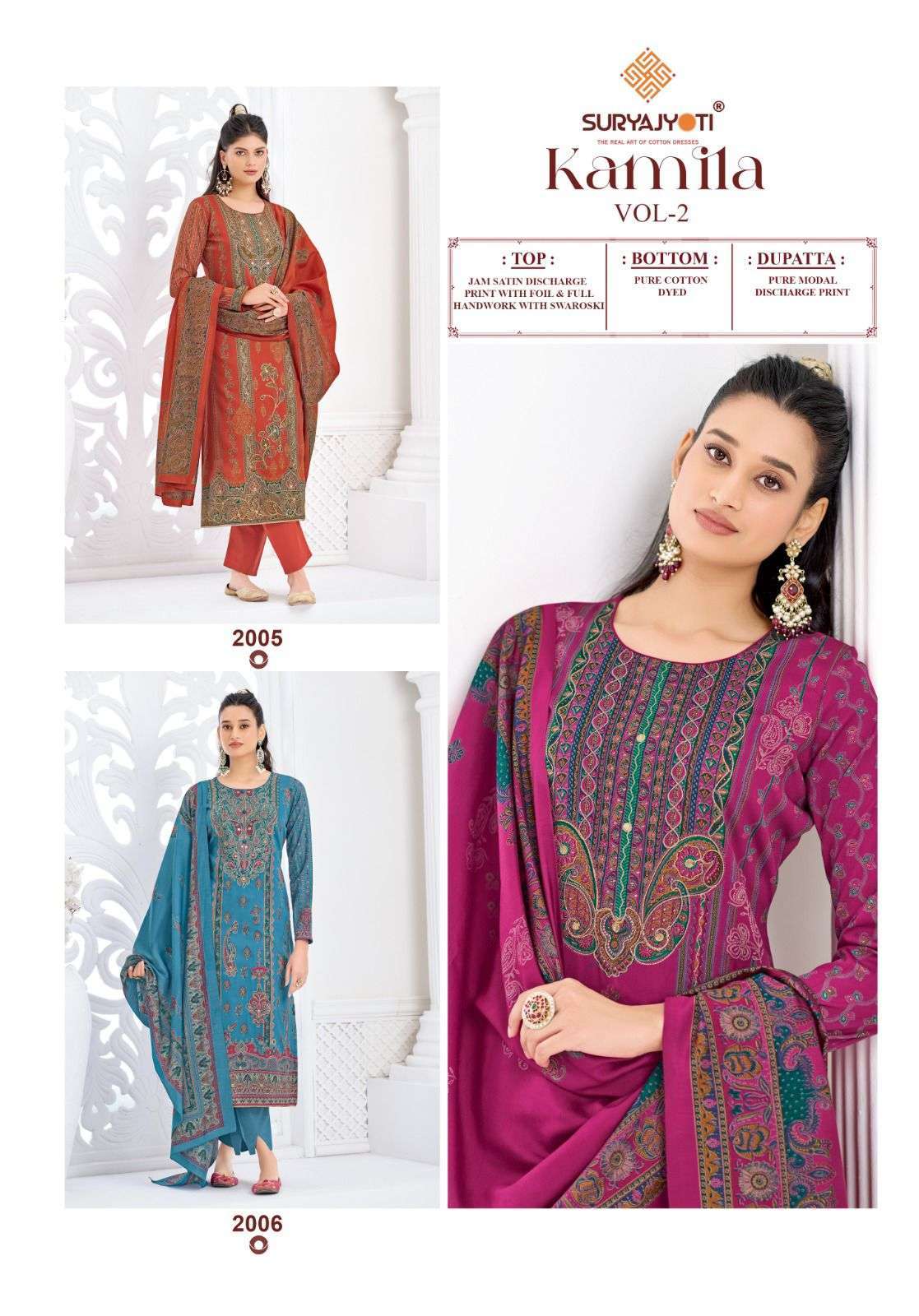 TOP - JAM SATIN DISCHARGE PRINT WITH FOIL,FULL TOP HEAVY HAND WORK AND SWAROVSKI