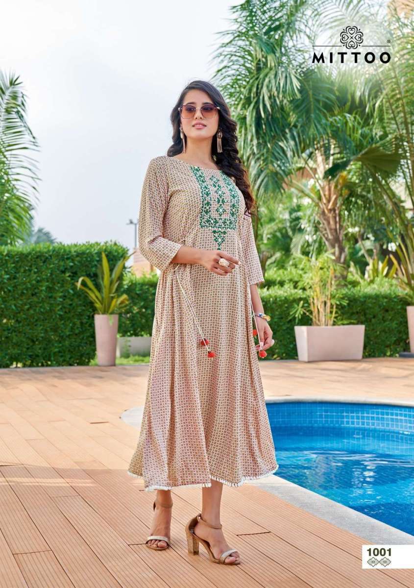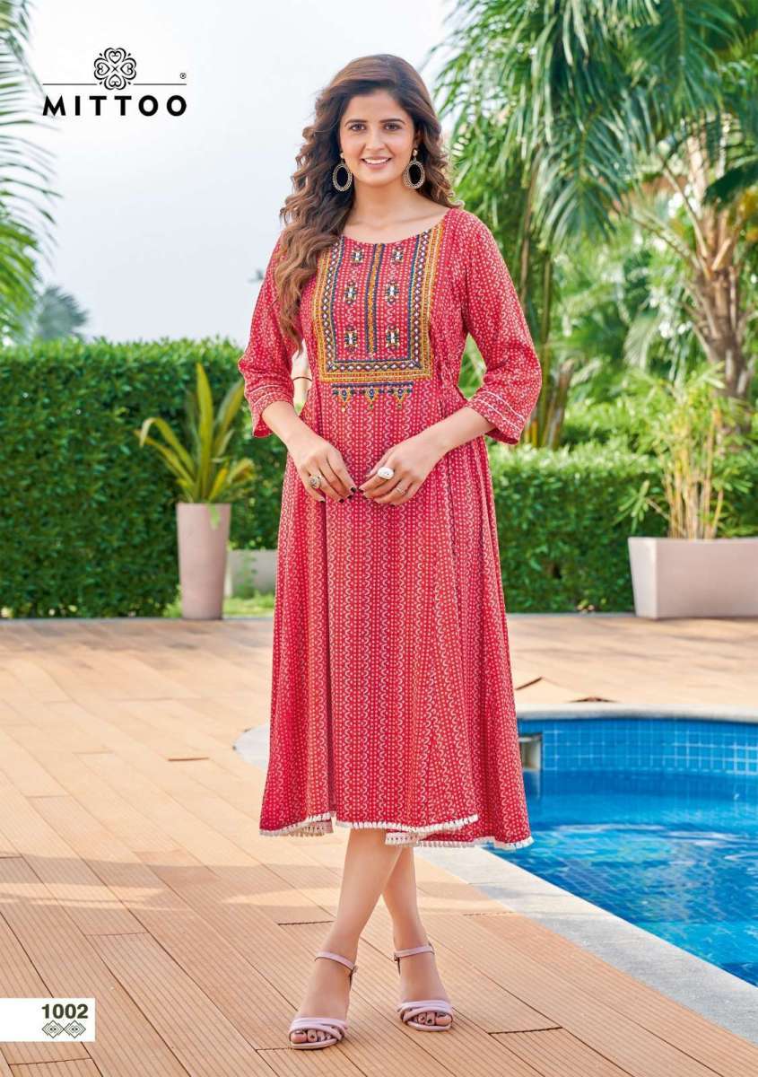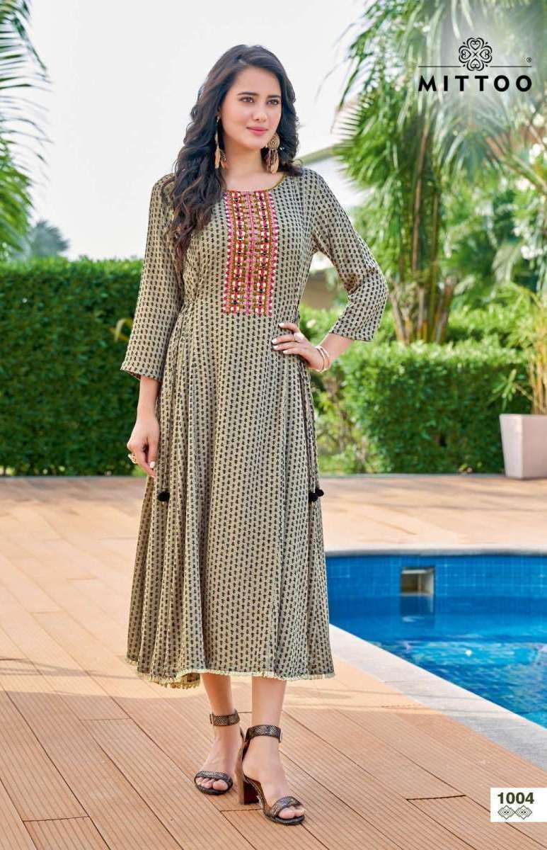 KANIKA KURTI BY MITTO DESIGNER WITH HAND WORK RAYON KURTIS ARE AVAILABLE AT WHOLESALE PRICE