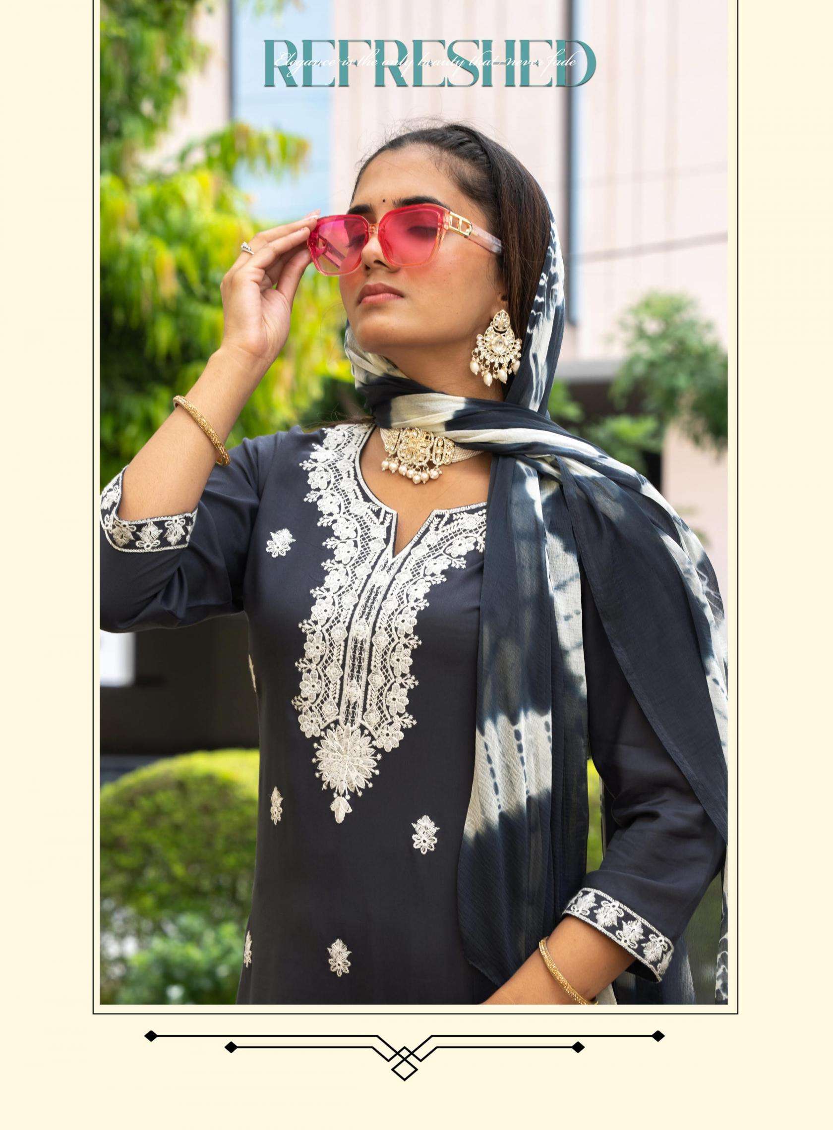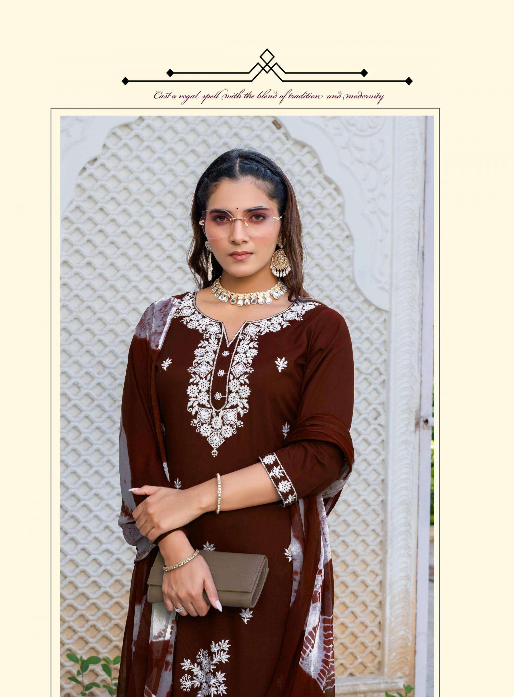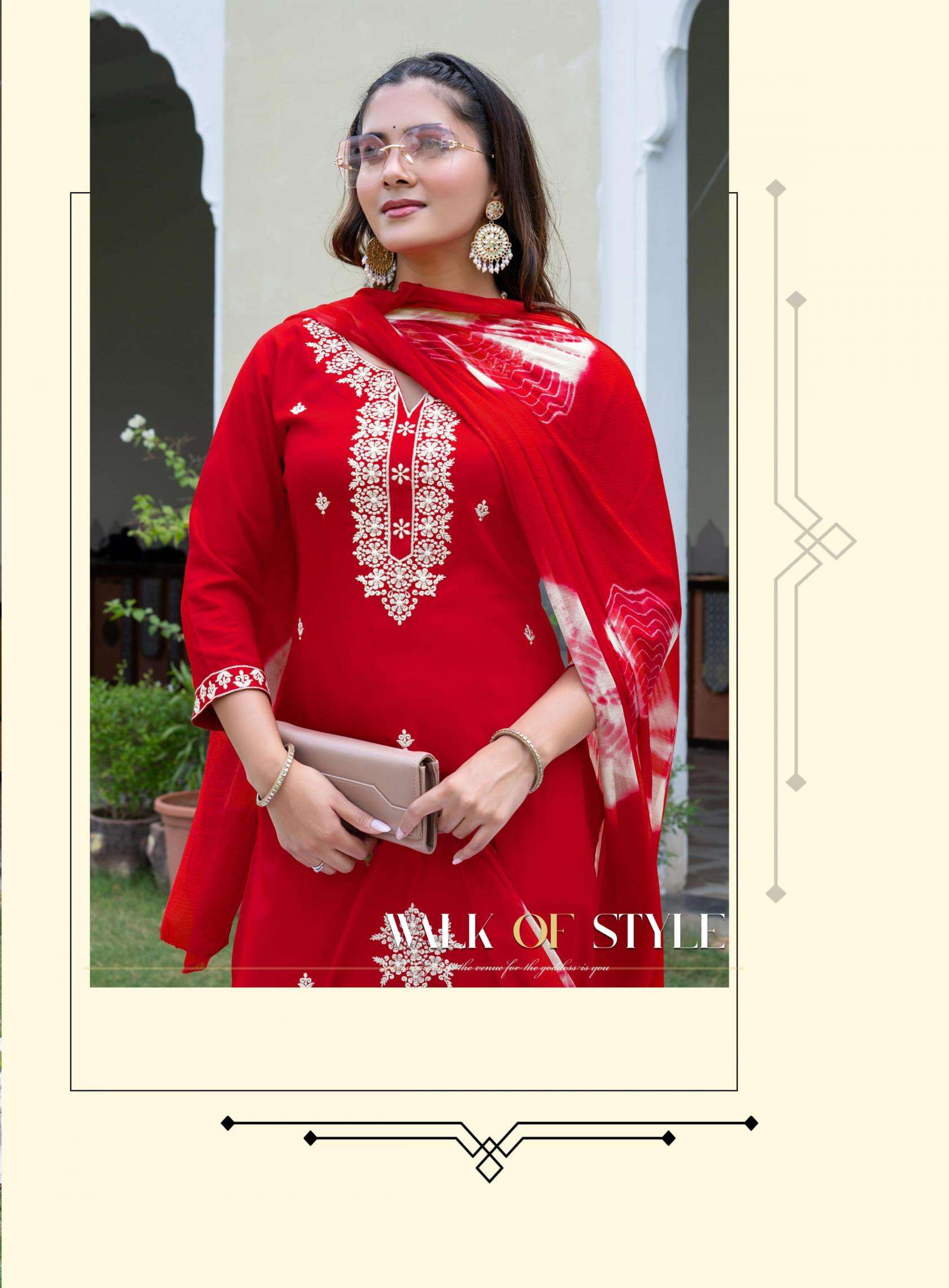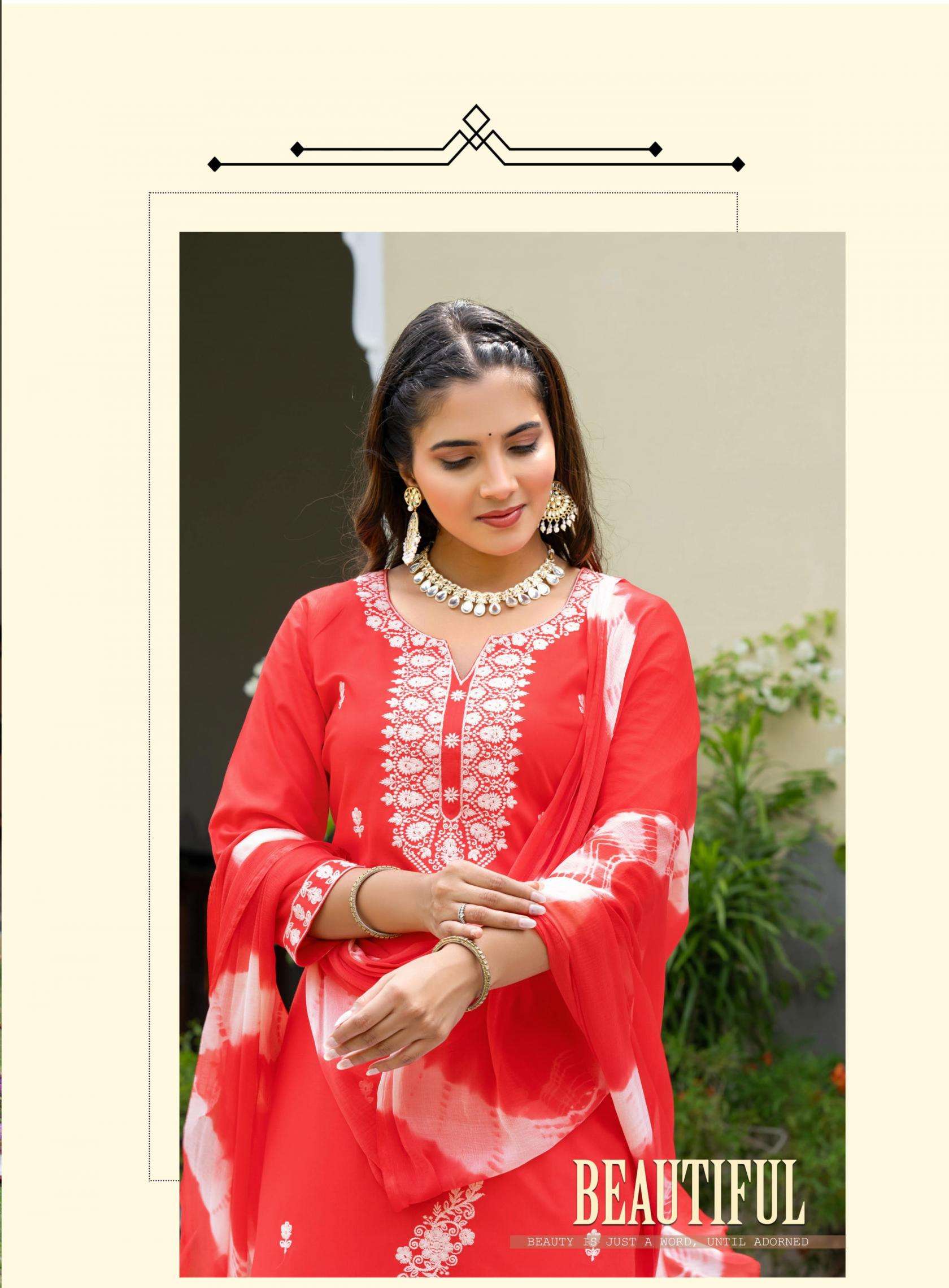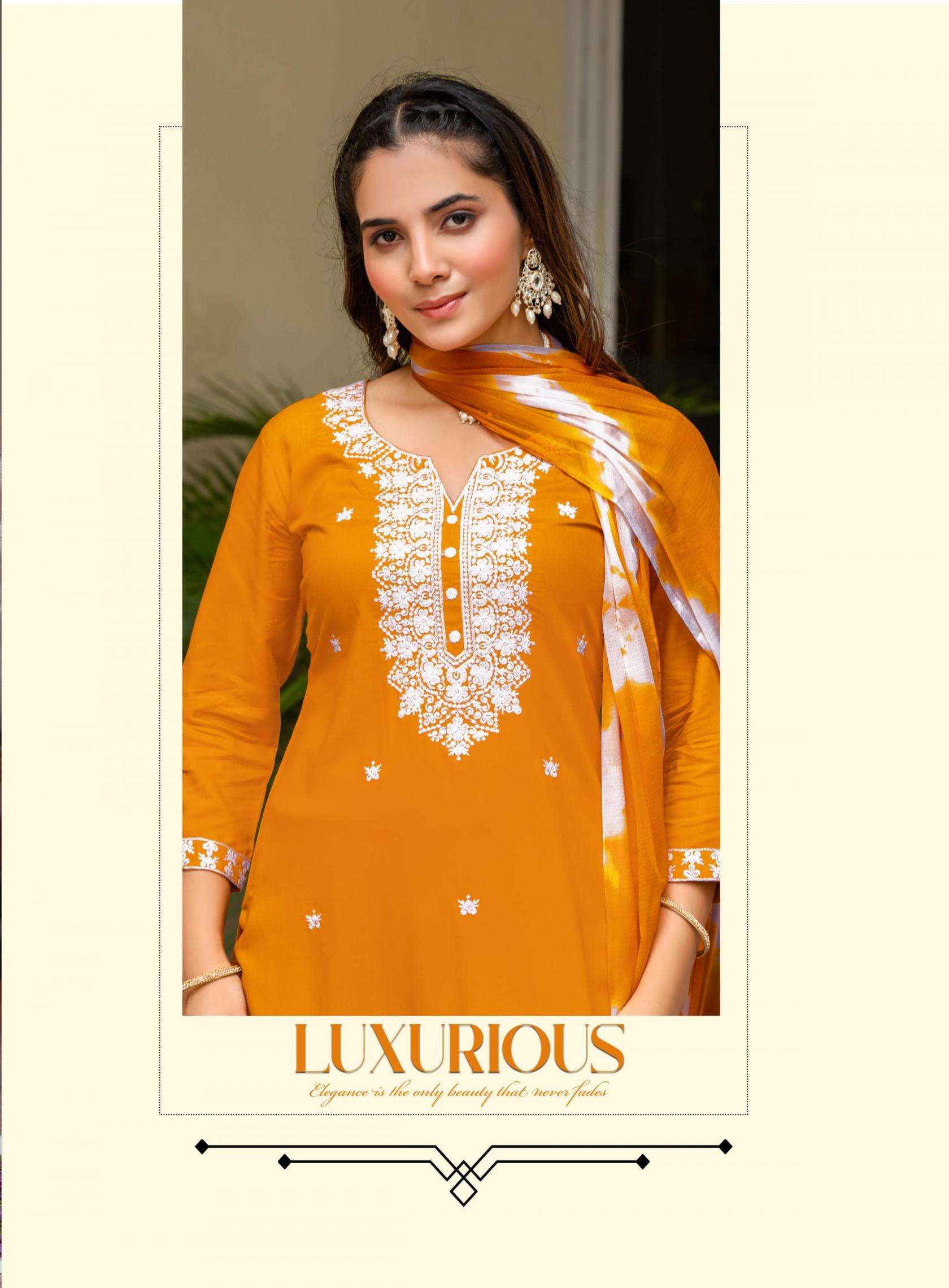 TOP - PREMIUM QUALITY HEAVY RAYON WITH WITH SLEEVES LOCK and EMBROIDERY ON FRONT, SLEEVE & DAMAN