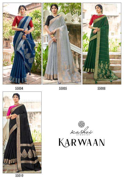 KARWAAN SAREE BY KASHVI LT DESIGNER LINEN SILK SAREES ARE AVAILABLE AT WHOLESALE PRICE