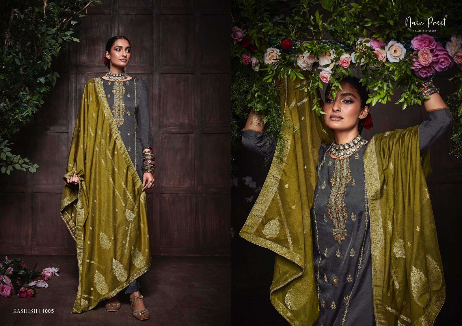 KASHISH BY NAINPREET DESIGNER WITH WORK SOFT SILK STRAIGHT SUITS ARE AVAILABLE AT WHOLESALE PRICE