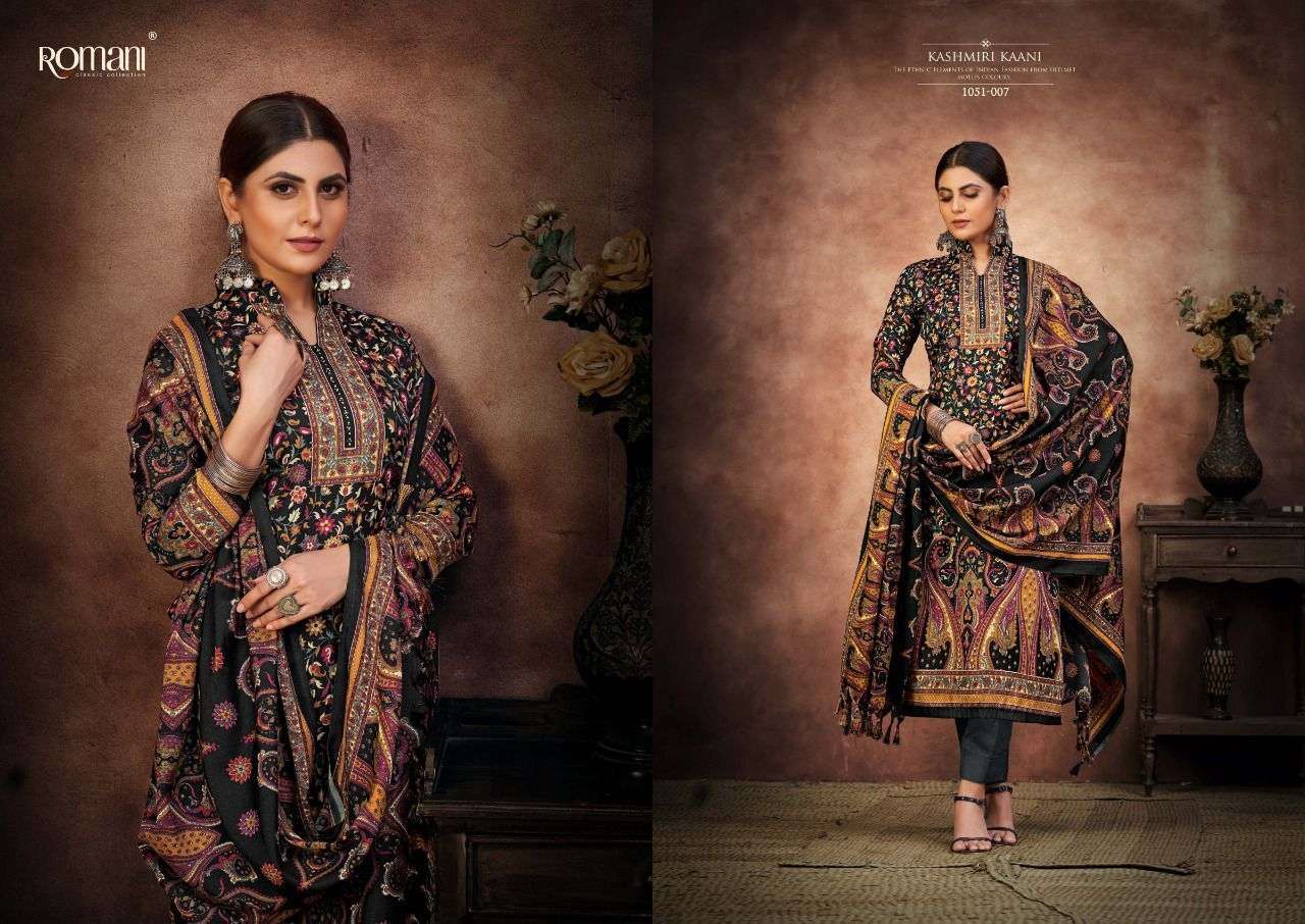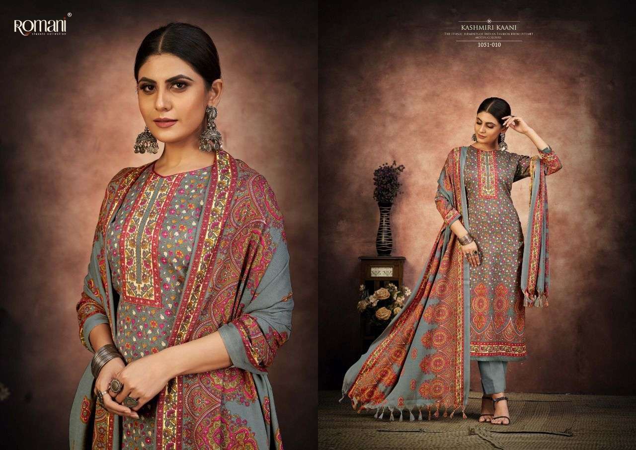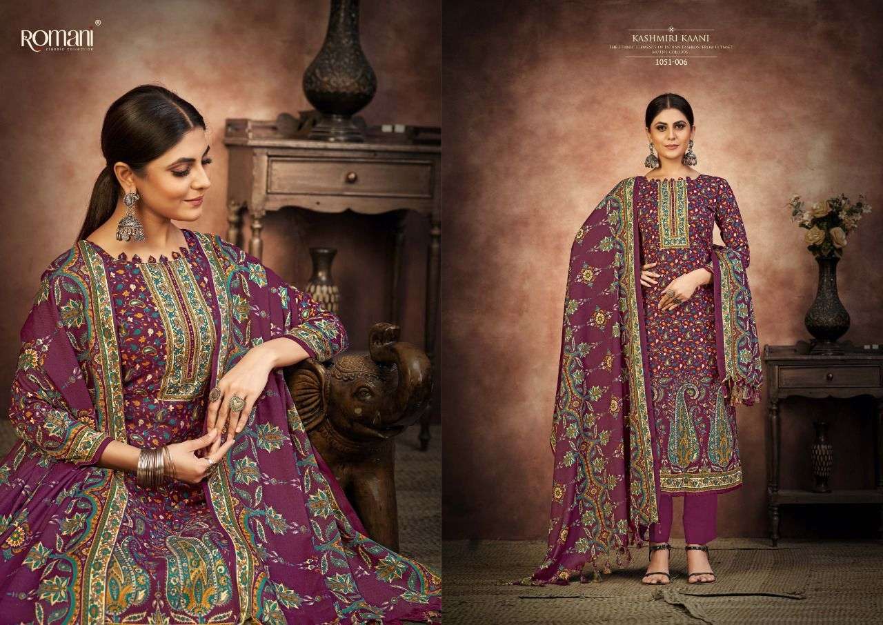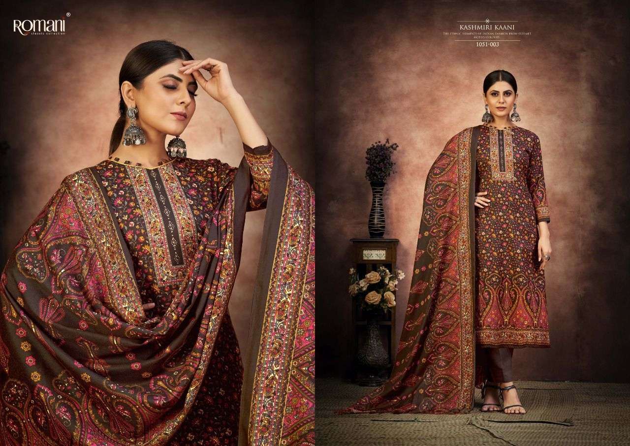 KASHMIRI BY ROMANI DESIGNER WITH PRINTED PASHMINA SUITS ARE AVAILABLE AT WHOLESALE PRICE