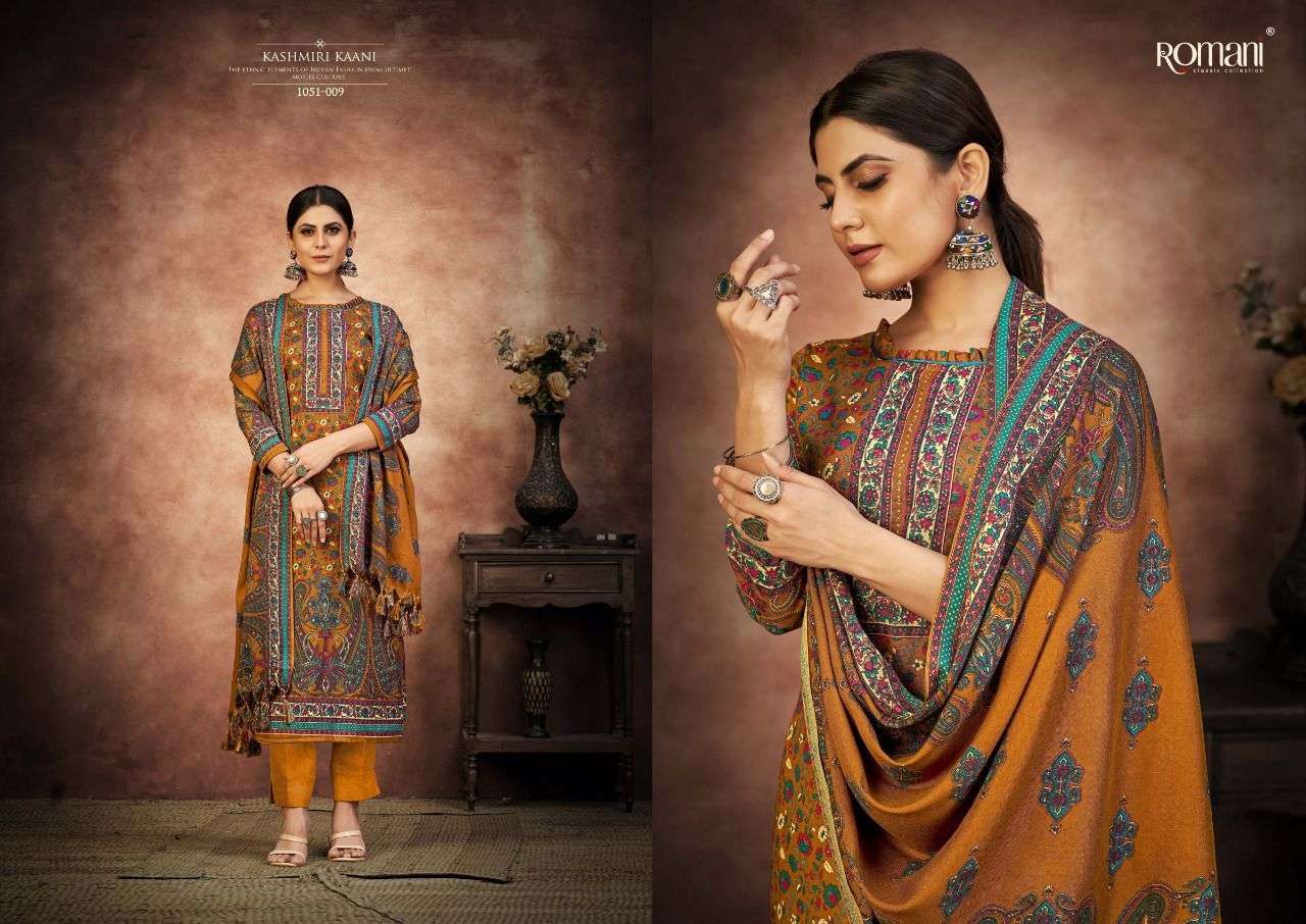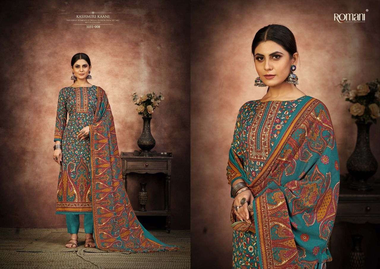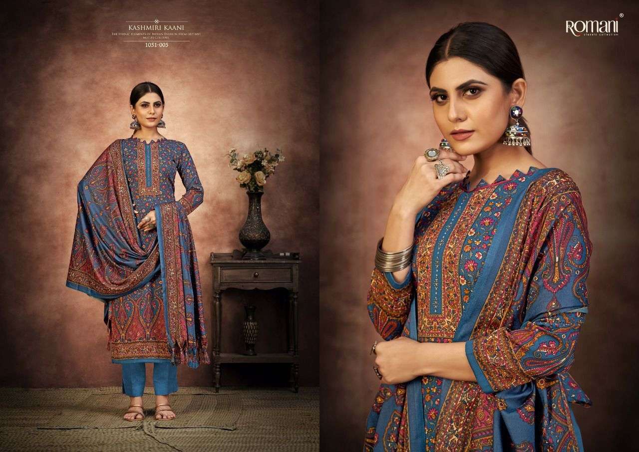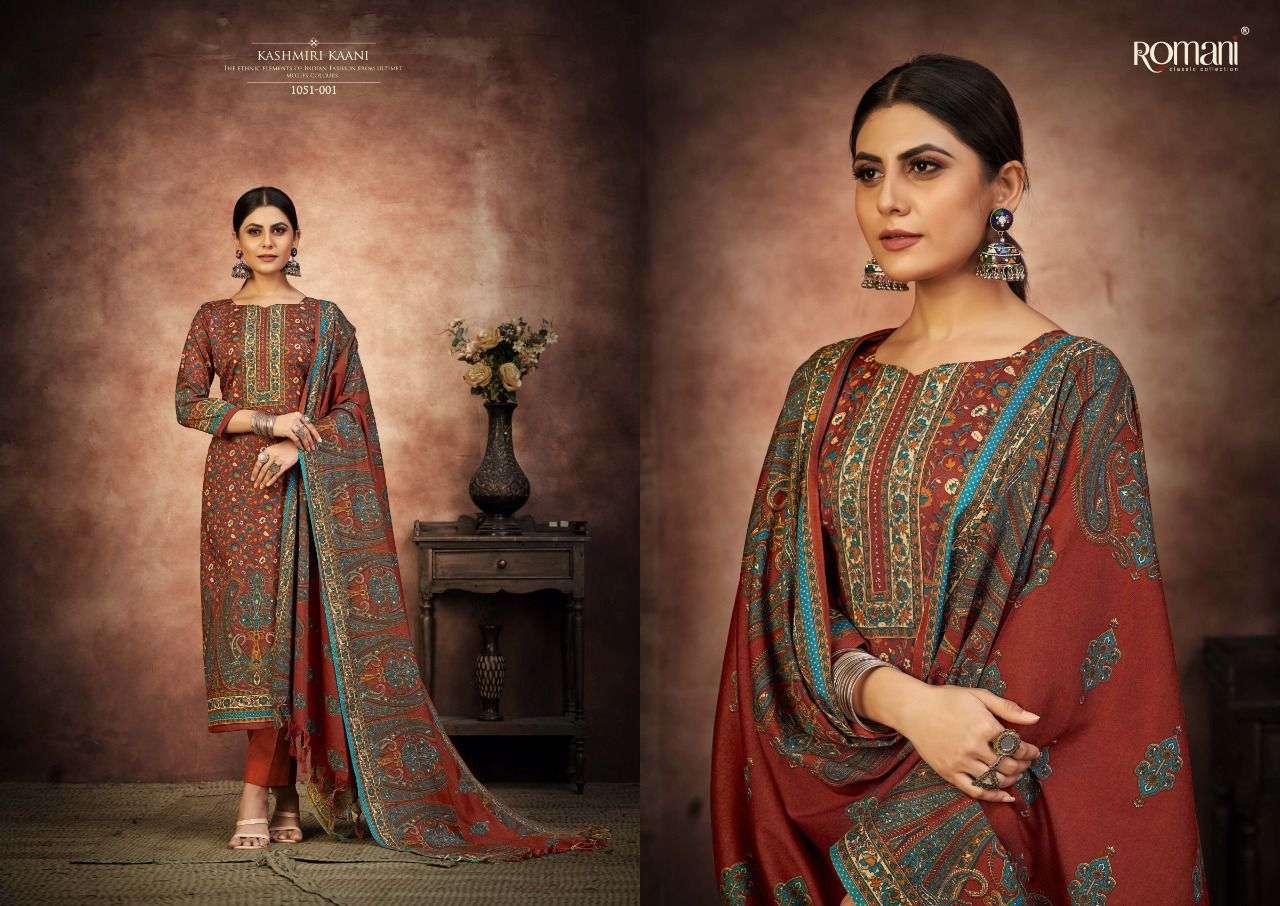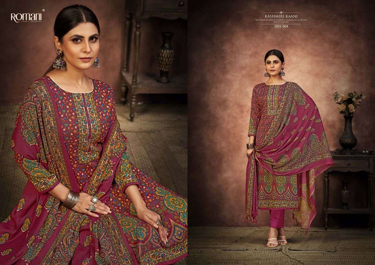 KASHMIRI BY ROMANI DESIGNER WITH PRINTED PASHMINA SUITS ARE AVAILABLE AT WHOLESALE PRICE