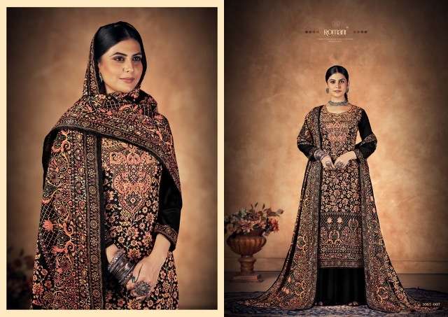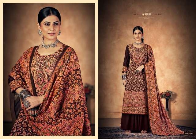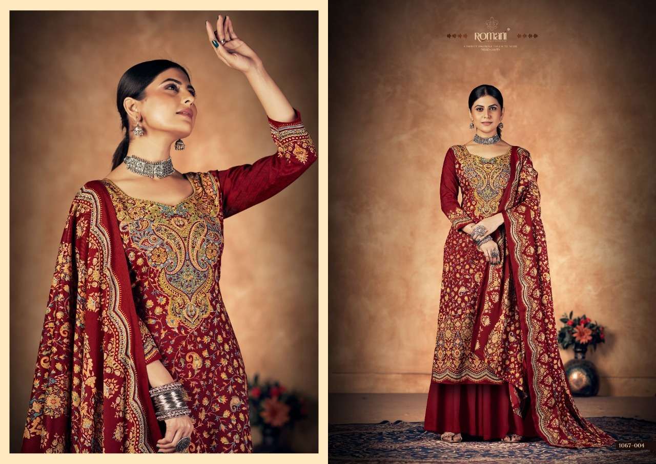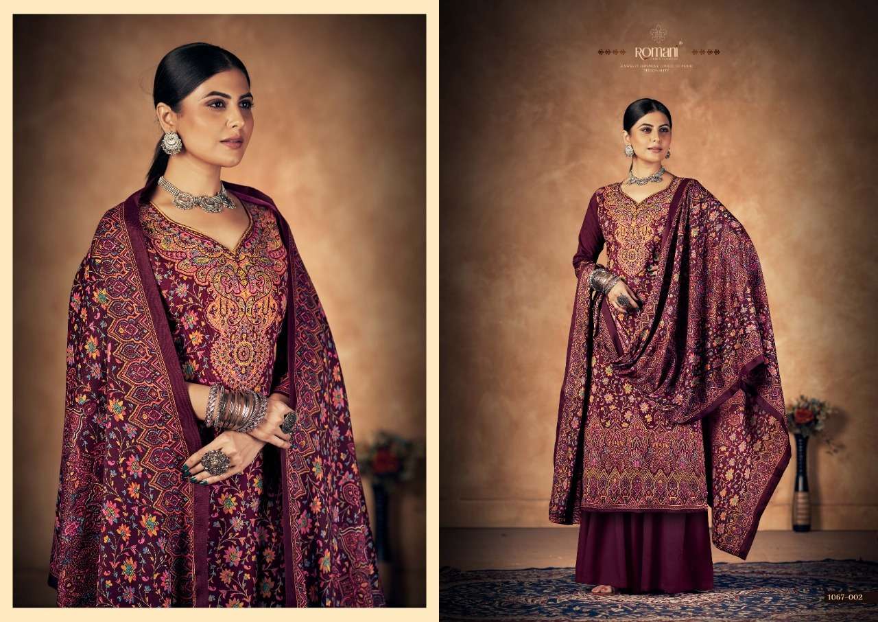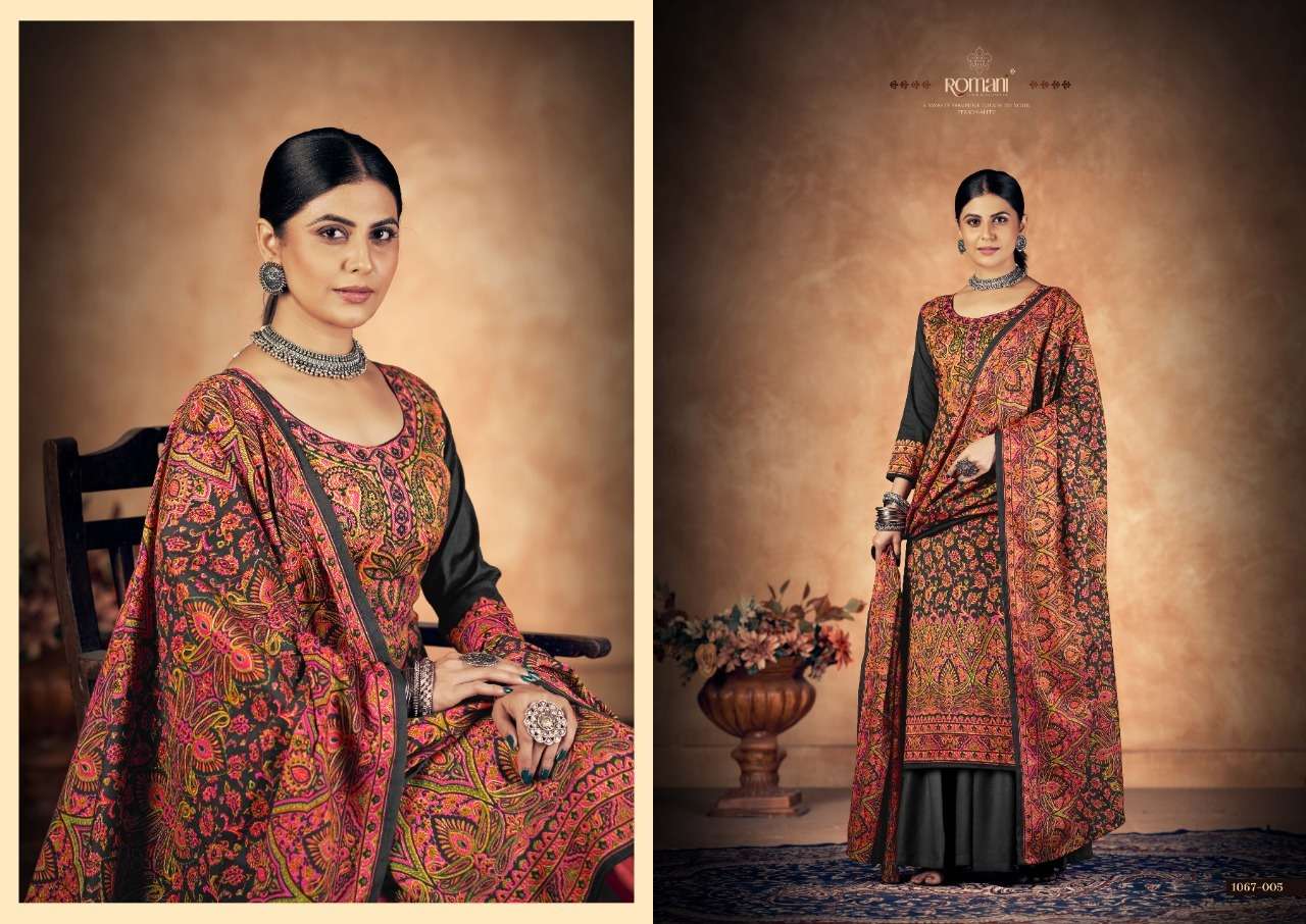 KASHMIRI KALI BY ROAMNI DESIGNER WITH PRINTED AND WORK PASHMINA SUITS ARE AVAILABLE AT WHOLESALE PRICE