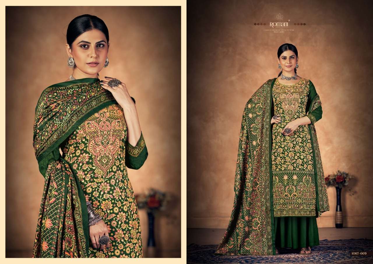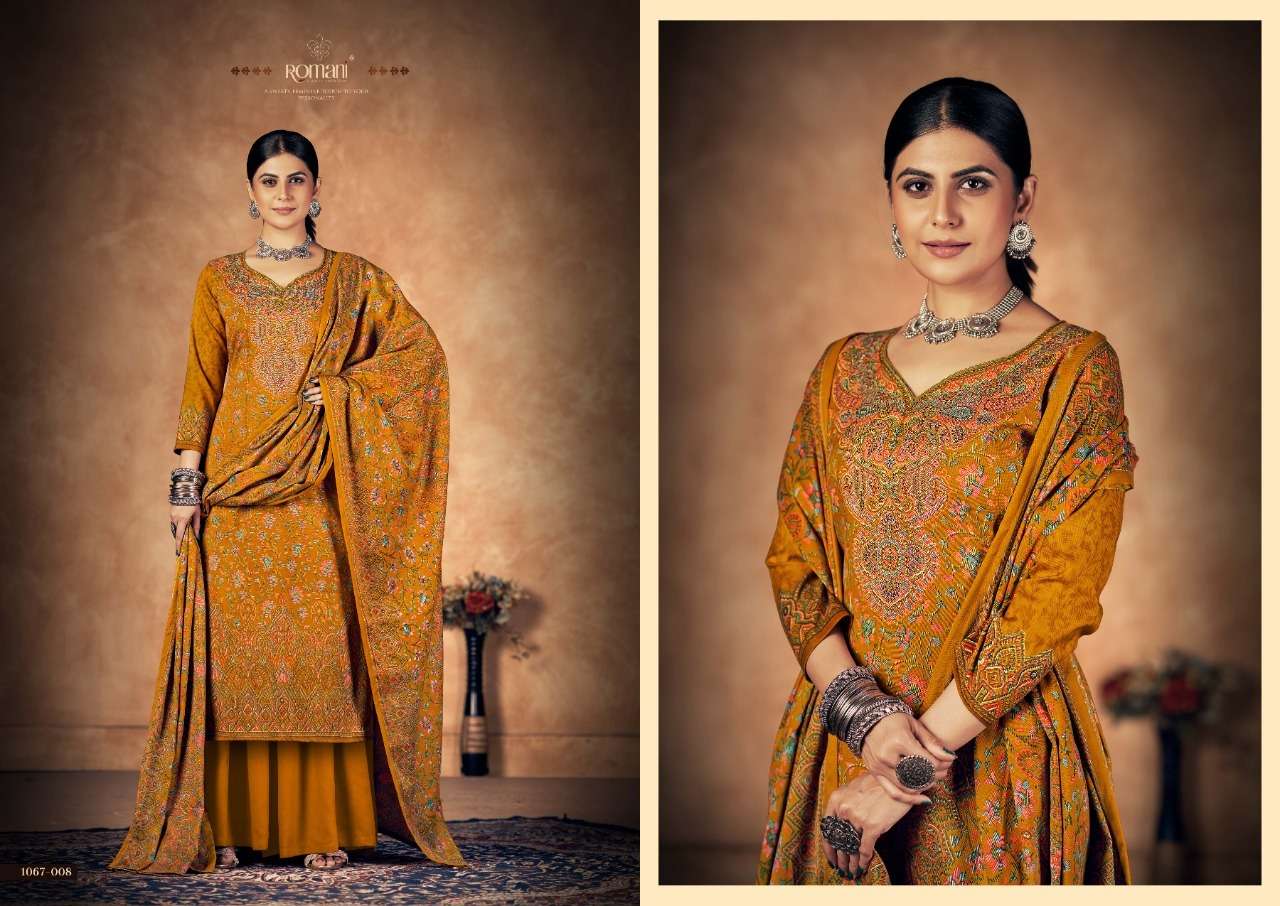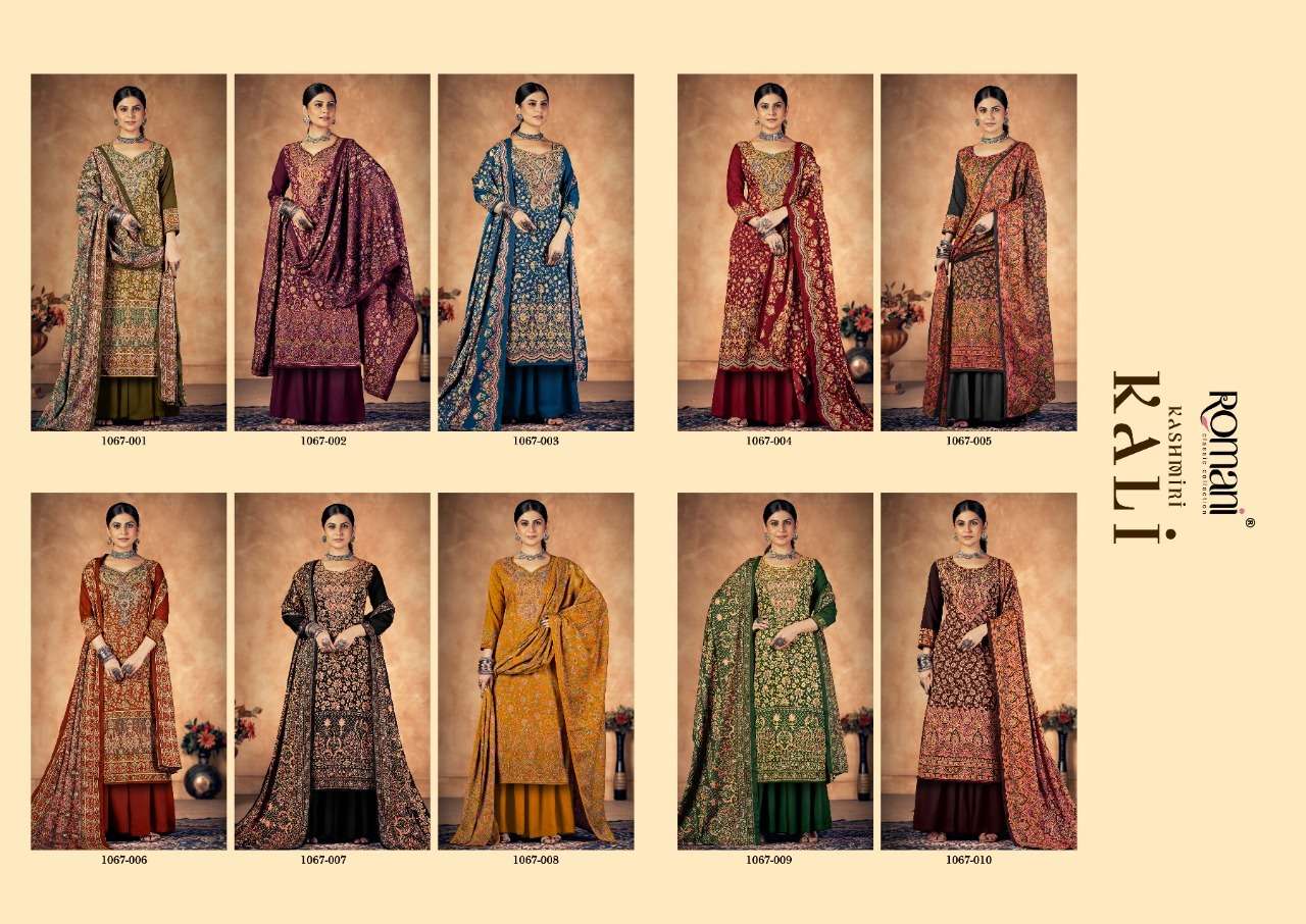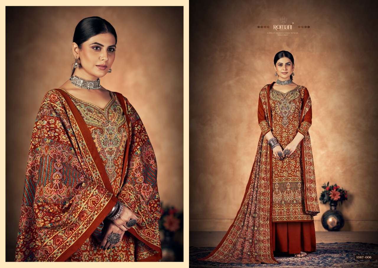 KASHMIRI KALI BY ROAMNI DESIGNER WITH PRINTED AND WORK PASHMINA SUITS ARE AVAILABLE AT WHOLESALE PRICE