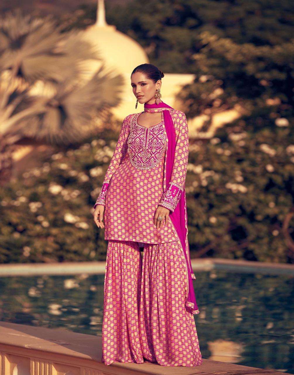 FABRIC - PREMIUM REAL CHINON SILK ( EXCLUSIVE DESIGNER LOOK EMBROIDERED THREE DIFFERENT STYLES IN SAME FABRIC )
