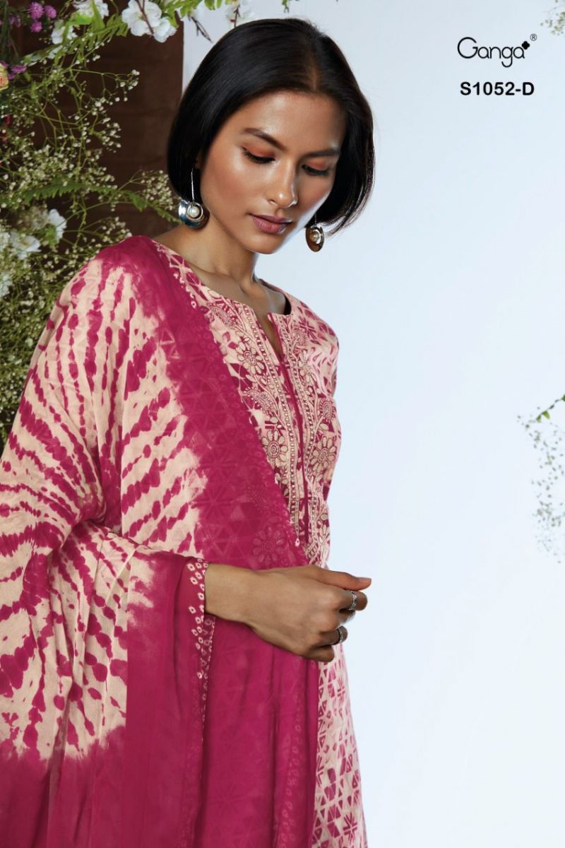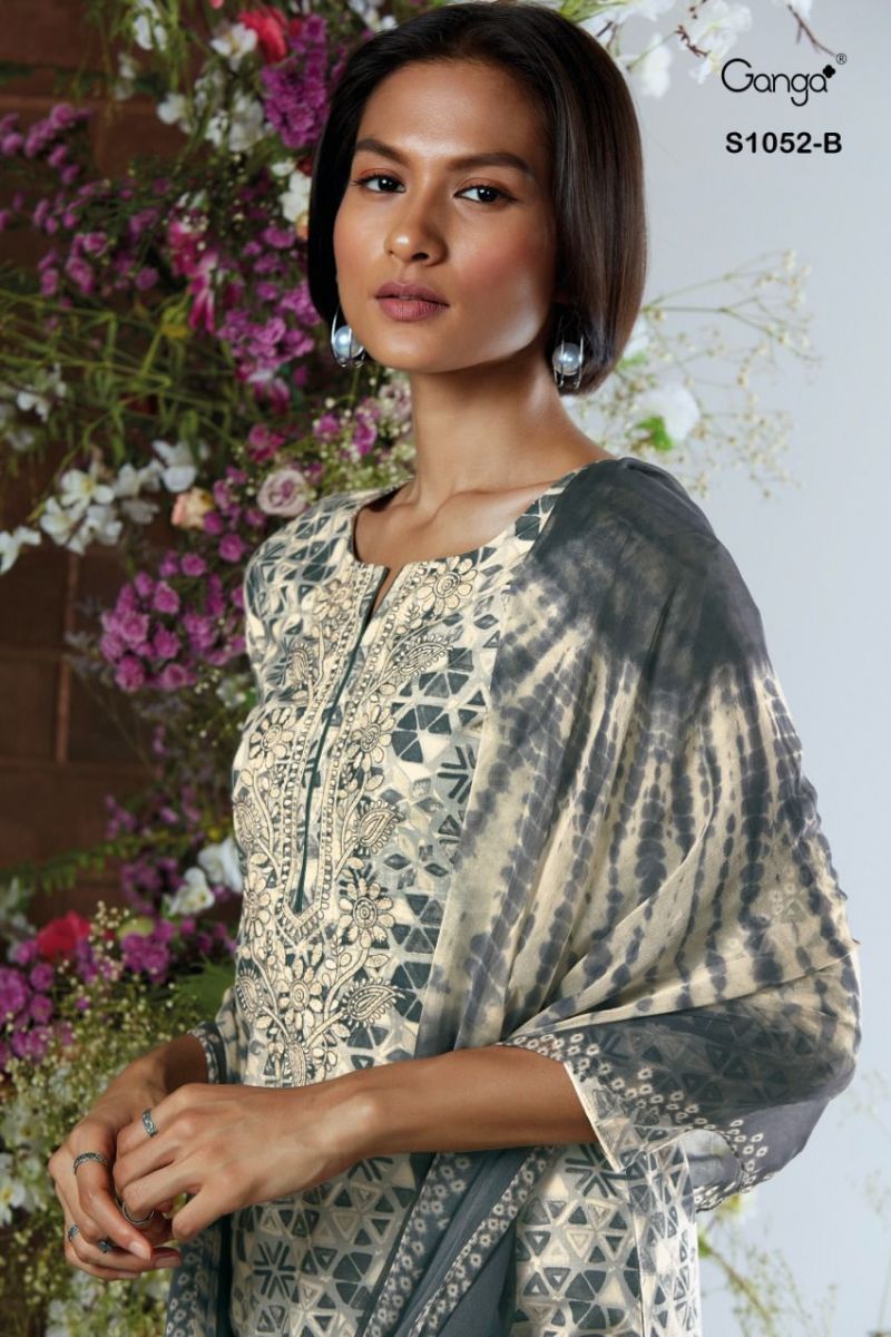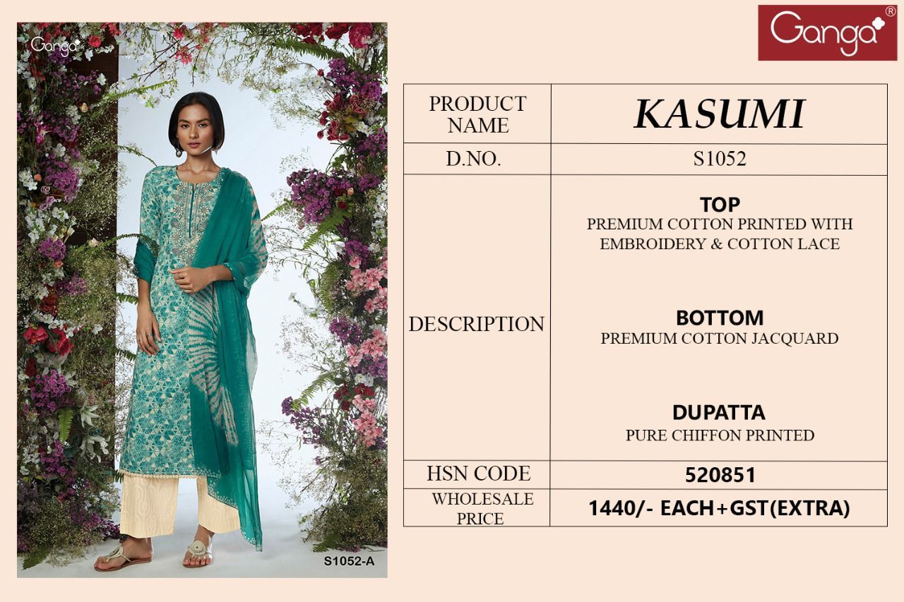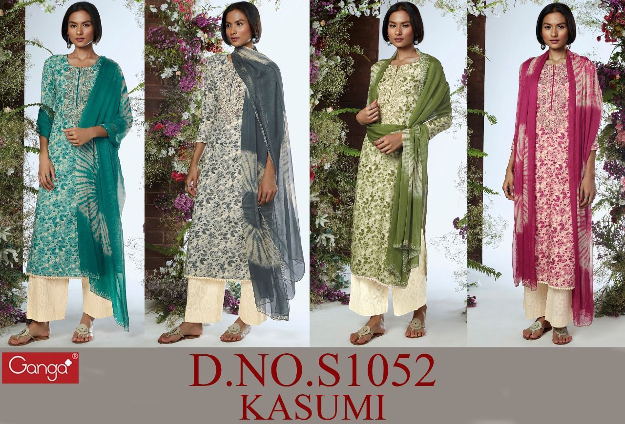 Kasumi S1052 By Ganga Designer With Orinted And Embroidery Work Cotton Suits Are Available At Wholesale Price